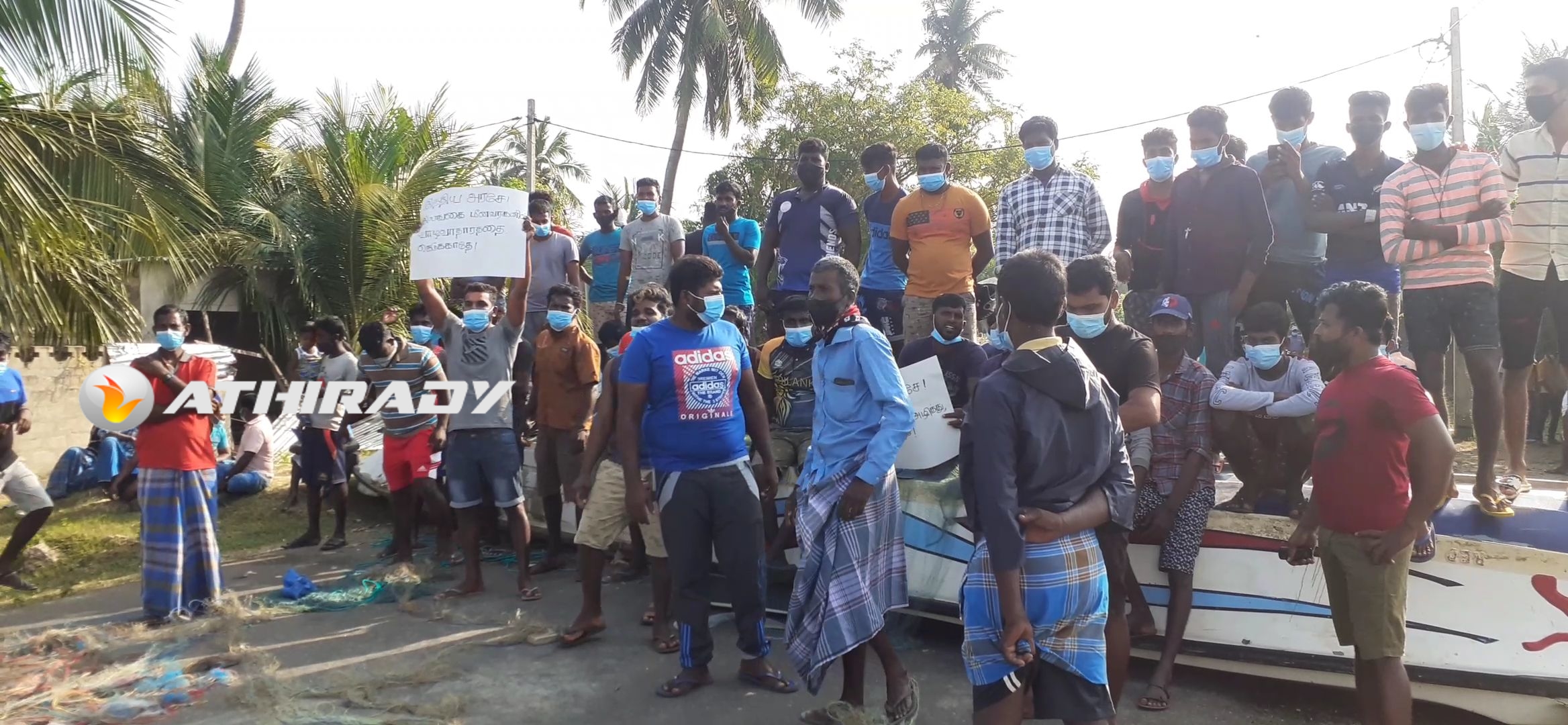 போராட்டத்தை முன்னெடுத்துள்ள மீனவர்கள் வீதிகளின் குறுக்கே படகுகள் மற்றும் வலைகளை போட்டு தமது போராட்டத்தை முன்னெடுத்து வருகின்றமை குறிப்பிடத்தக்கது.