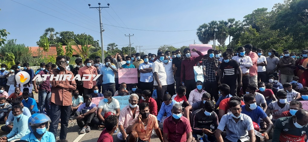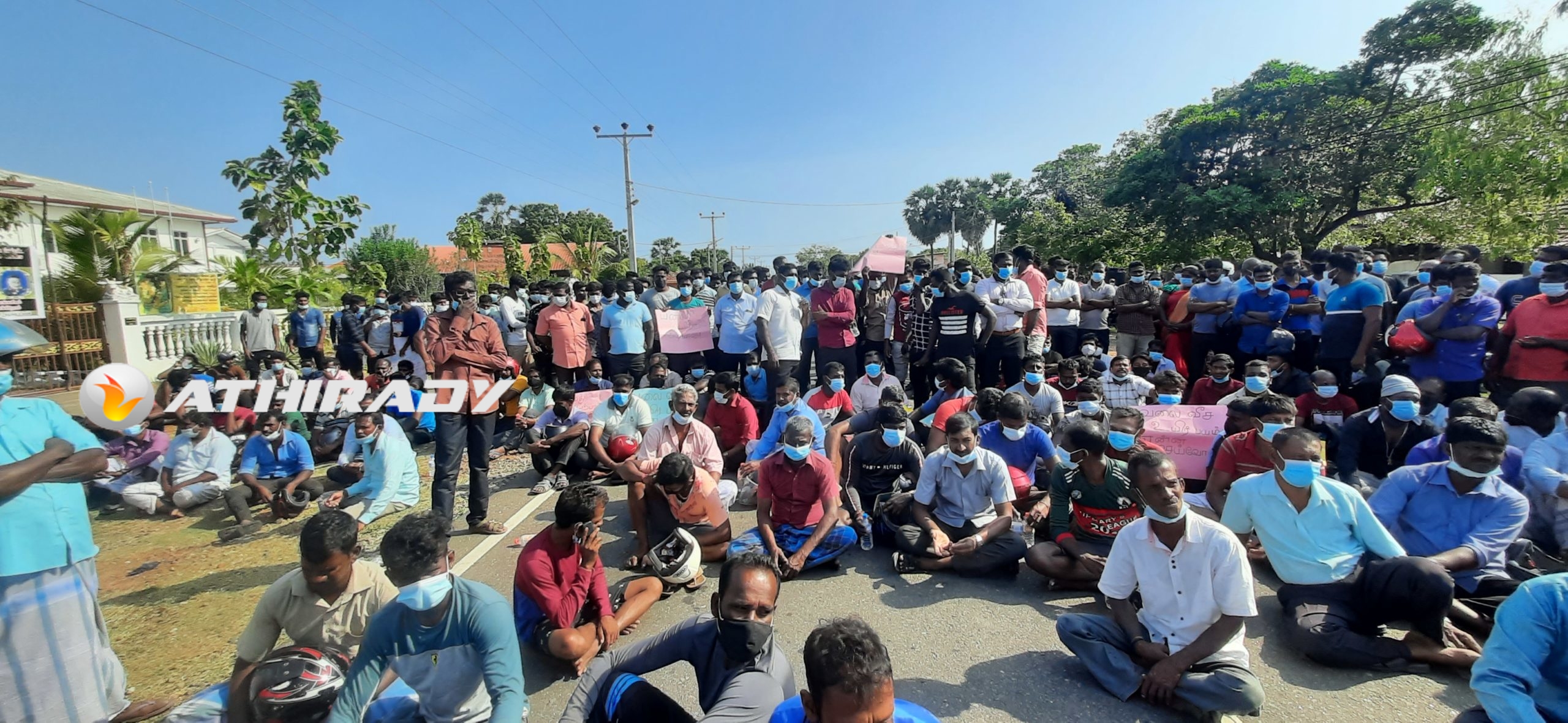 தாளையடி வீதியை மறித்துள்ள அப்பகுதி மீனவர்கள் போராட்டம்!! (படங்கள், வீடியோ)
