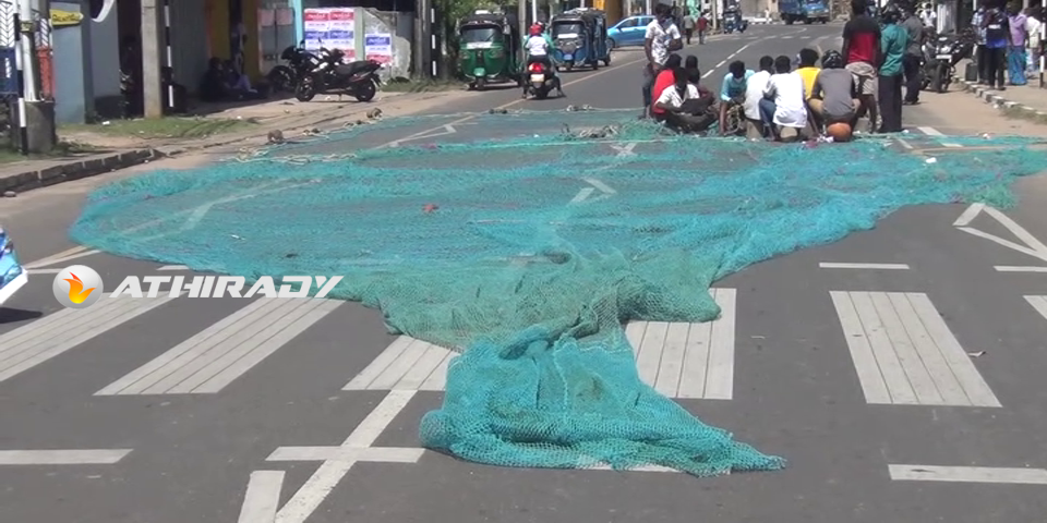 அத்தோடு யாழ்ப்பாணம் – பருத்தித்துறை பிரதான வீதியையும் மறித்து வீதியில் இந்திய மீனவர்களால் அறுத்து நாசமாக்கப்பட்ட வலைகளையும் போட்டு போராட்டம் முன்னெடுக்கப்பட்டது.