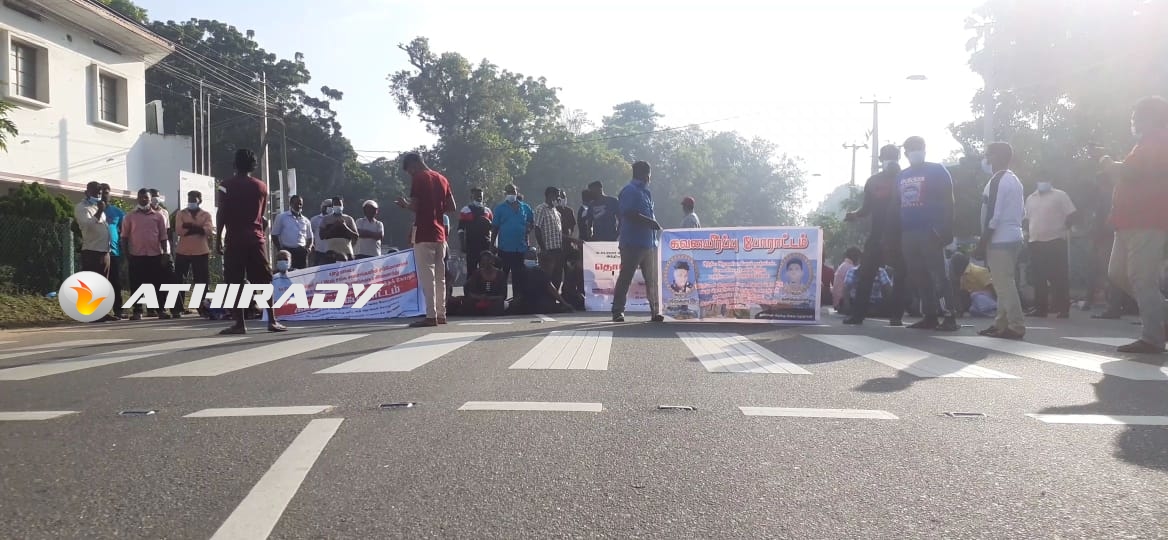 அத்தோடு மாவட்ட செயலகத்திற்கு முன்னாள் யாழ்ப்பாணம் – கண்டி பிரதான வீதியையும் மறித்தும் போராட்த்தை முன்னெடுத்துள்ளனர்.