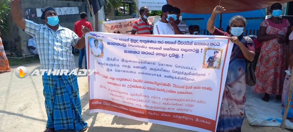 இந்திய மீனவர்களின் அத்துமீறல்களை கண்டித்தும் , வடமராட்சி கிழக்கு மீனவர்கள் இருவர் இந்திய மீனவர்க்ளின் படகு மோதி உயிரிழந்த சம்பவத்திற்கு நீதி கோரியும் ஐந்தாவது நாளாக இன்றைய தினமும் வடமராட்சி மீனவர்கள் போராட்டத்தினை முன்னெடுத்து வருகின்றனர்.