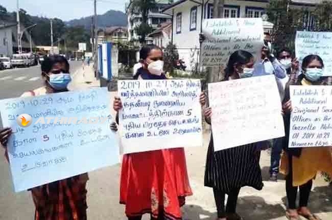 2019 ஆம் ஆண்டு வெளியிடப்பட்ட வர்த்தமானி அறிவித்தலின் பிரகாரம் நுவரெலியா மாவட்டத்தில் புதிதாக ஐந்து பிரதேச செயலகங்களை அமைக்குமாறு வலியுறுத்தி நுவரெலியா மாவட்ட செயலகத்துக்கு முன்பாக இன்று (09) கவனயீர்ப்பு போராட்டமொன்று முன்னெடுக்கப்பட்டது.