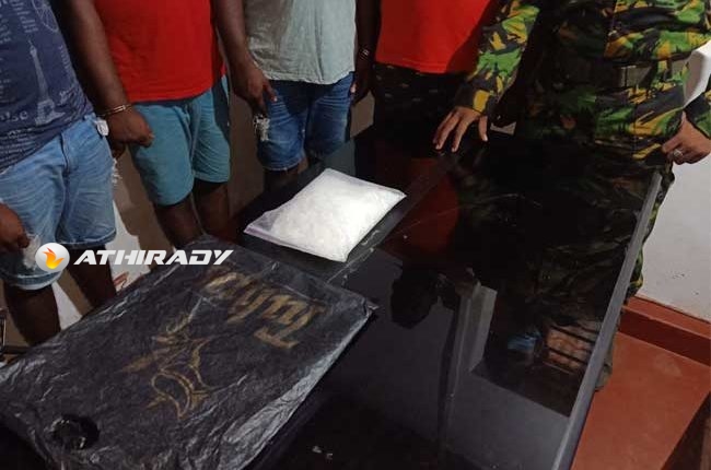 மன்னார் பகுதியில் 20 மில்லியன் ரூபாவுக்கும் அதிகமான பெறுமதியான ஐஸ் போதைப்பொருளுடன் ஐந்து கடத்தல்காரர்கள் கைது செய்யப்பட்டுள்ளனர்.