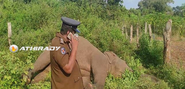 மின்சார வேலியில் தும்பிக்கையினை பிடித்தபடி யானை உயிரிழந்துள்ளது.