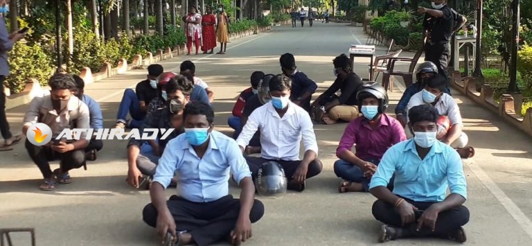 யாழ். பல்கலை வாயிலை மூடி மாணவர்கள் போராட்டம்!! (படங்கள்)
