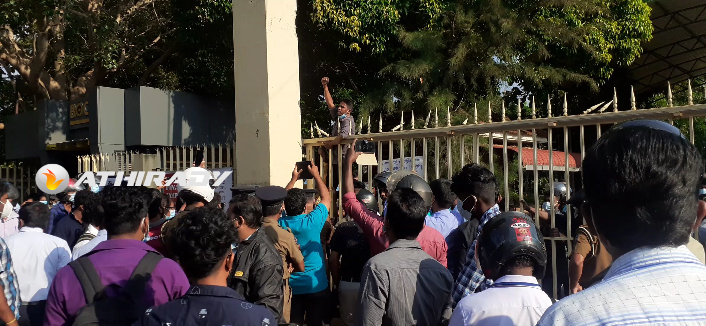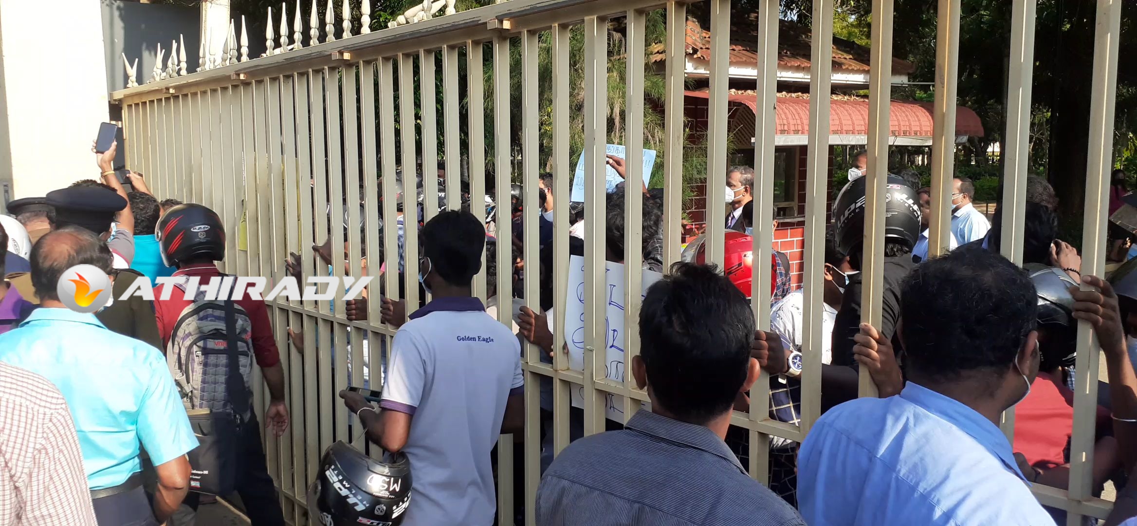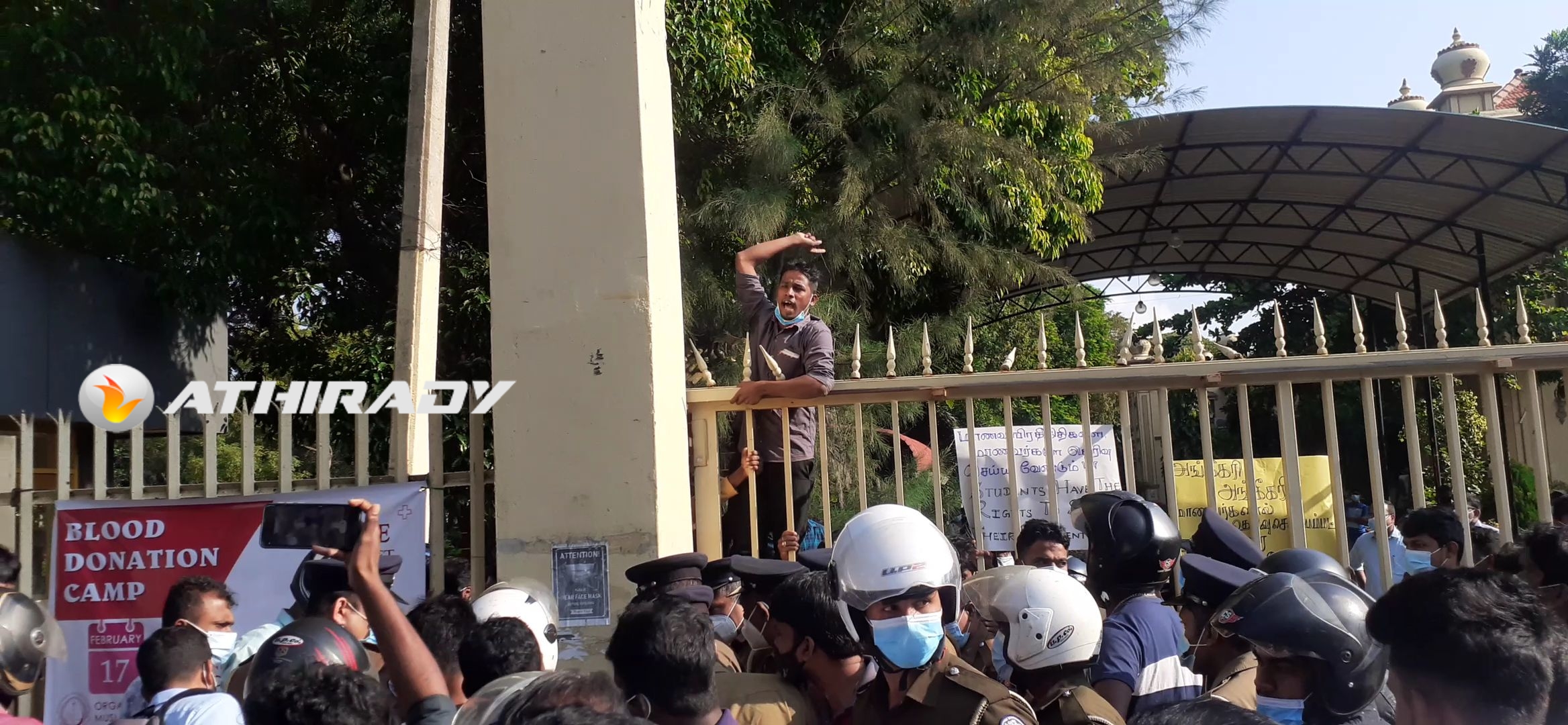 யாழ் பல்கலைகழக நுழைவாயிலை மூடி இன்று காலை மாணவா்கள் முடக்கல் போராட்டம்!! (படங்கள், வீடியோ)