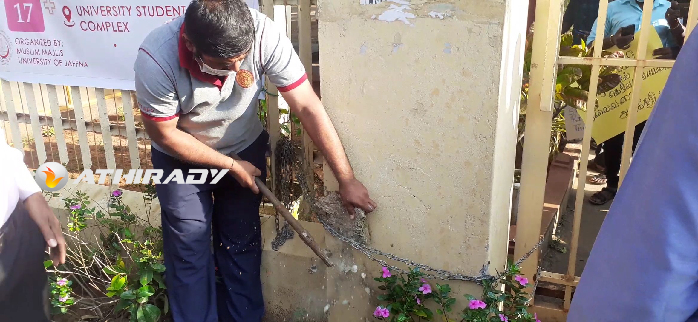யாழ்ப்பாண பல்கலைகழக நுழைவாயிலை மூடி இன்று காலை மாணவா்கள் முடக்கல் போராட்டத்தை முன்னெடுத்துள்ளனா்.