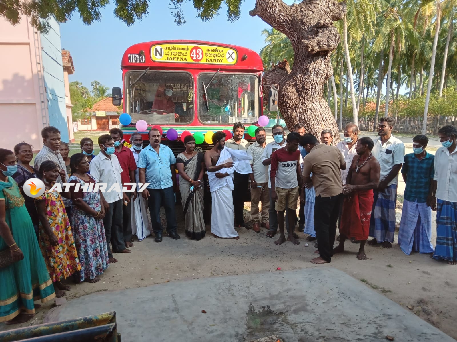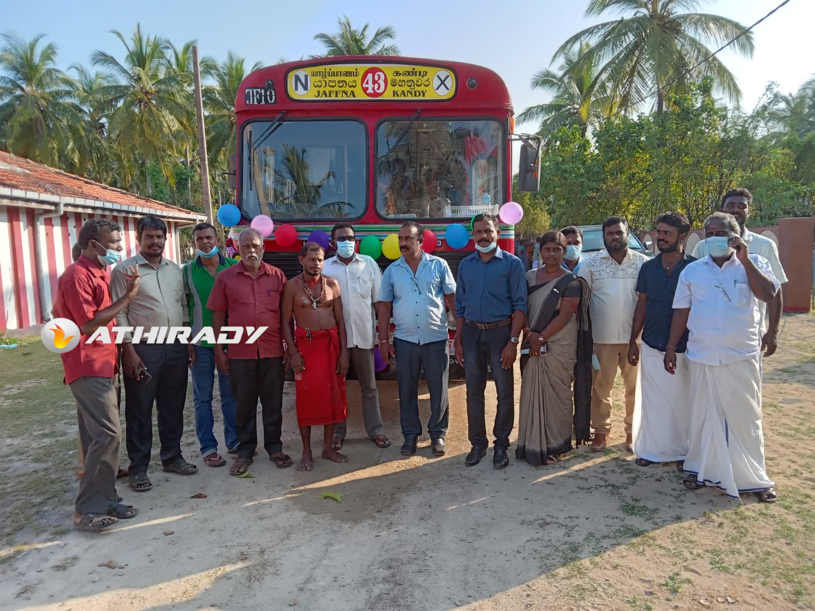 இதற்கிணங்க குறித் பகுதிக்கான சேவையை ஆரம்பிப்பதற்கான நடவடிக்கைகளை மேற்கொள்வதாக வடபிராந்திய பொது முகாமையாளர் குணபால செல்வம் தெரிவித்திருந்தமைக்கு இணங்க இன்றையதினம் குறித்த பேருந்து சம்பிரதாயபூர்வமாக ஆரம்பிக்கப்பட்டுள்ளது.