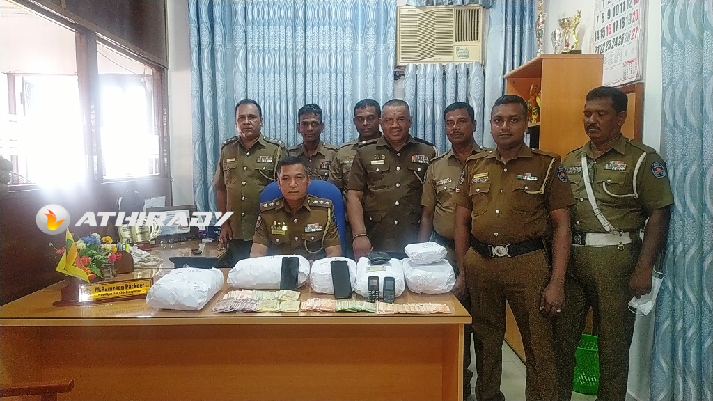 மேலும் இவ்வாறு கைதாகிய 27 மற்றும் 28 வயதுடைய சந்தேக நபர்கள் உட்பட மீட்கப்பட்ட சான்று பொருட்கள் பொலிஸ் நிலையத்திற்கு எடுத்து செல்லப்பட்டு மேலதிக விசாரணைகளை கல்முனை பொலிஸார் முன்னெடுத்து வருகின்றனர்.