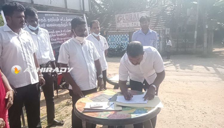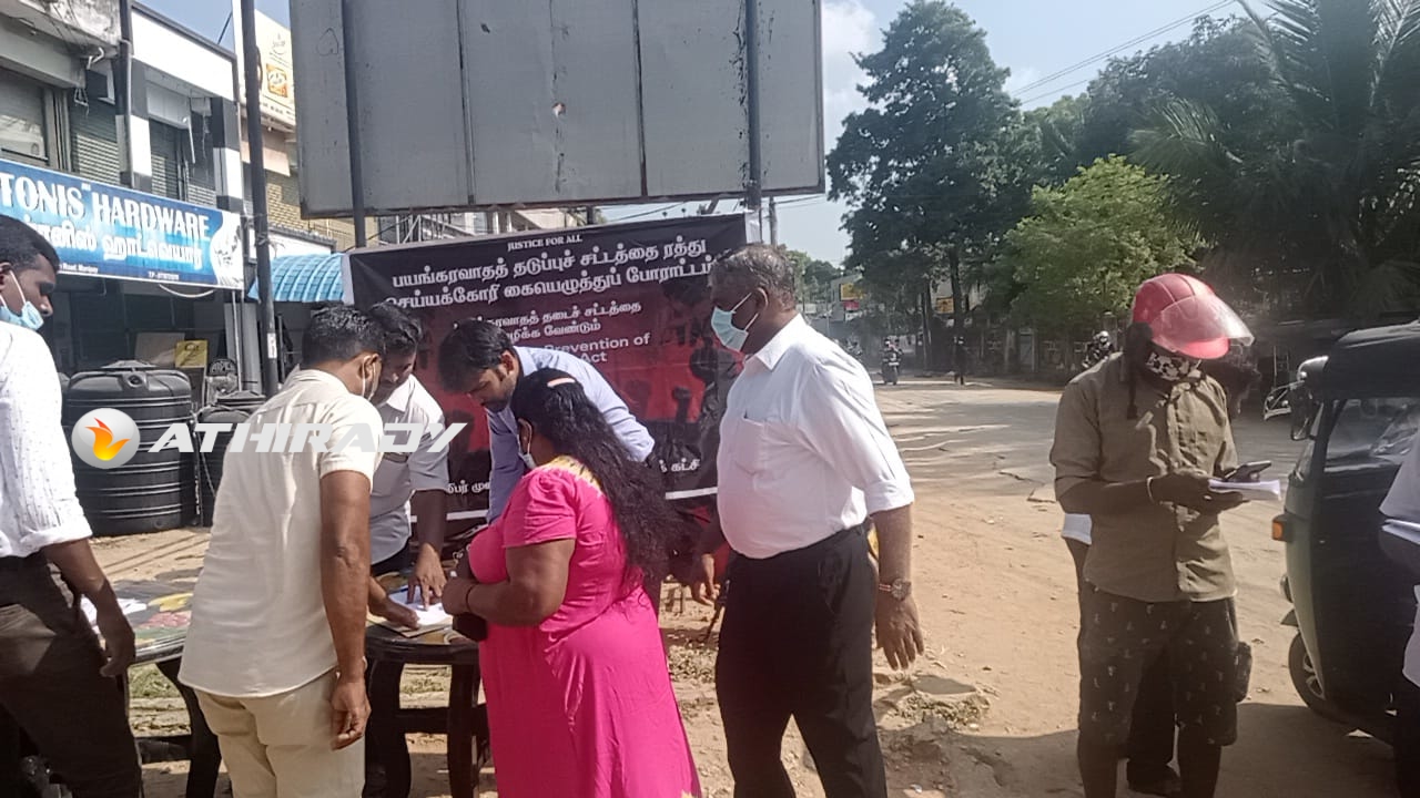 பயங்கரவாத தடைச்சட்டத்தை நீக்குமாறு கோரி யாழ்ப்பாணத்தில் இன்றும் கையெழுத்து போராட்டம் முன்னெடுக்கப்பட்டது.