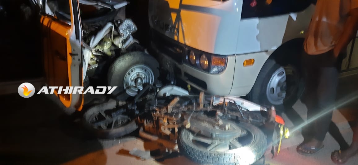 பலாலி வீதி பரமேஸ்வராச் சந்தியில் இன்று அதிகாலை 12 மணியளவில் மோட்டார் சைக்கிளை திருநெல்வேலிப் பகுதியில் இருந்து வந்த மகேந்திரா வாகனம் மோதித் தள்ளியது.