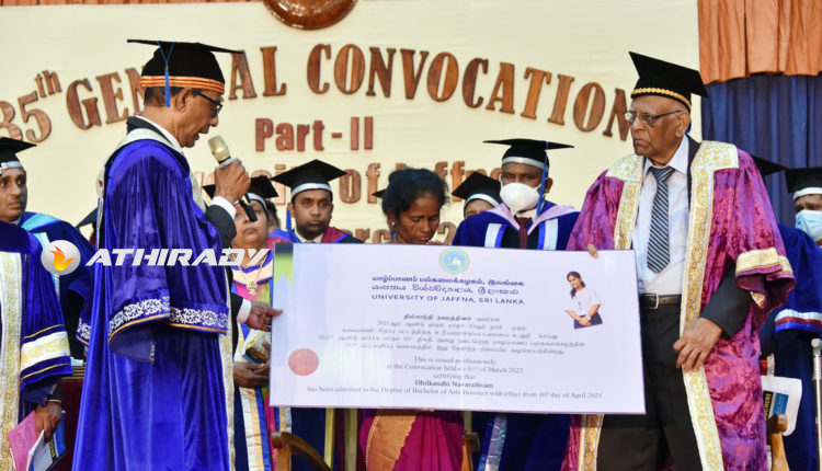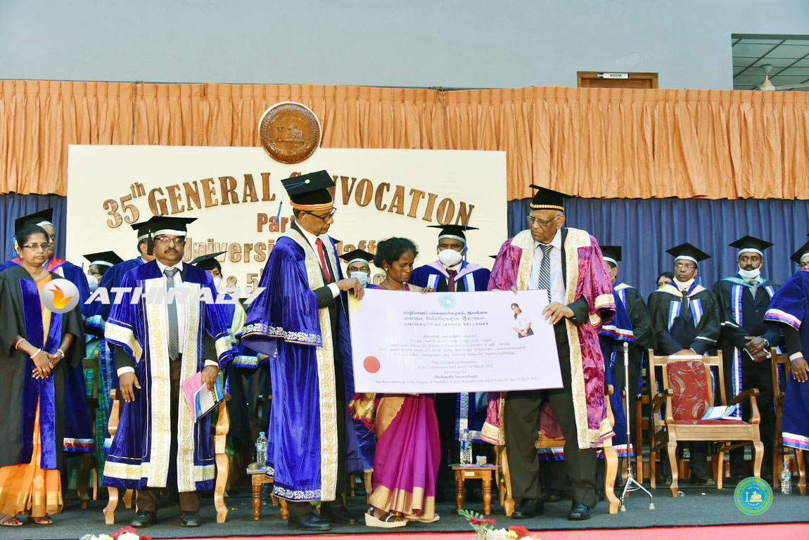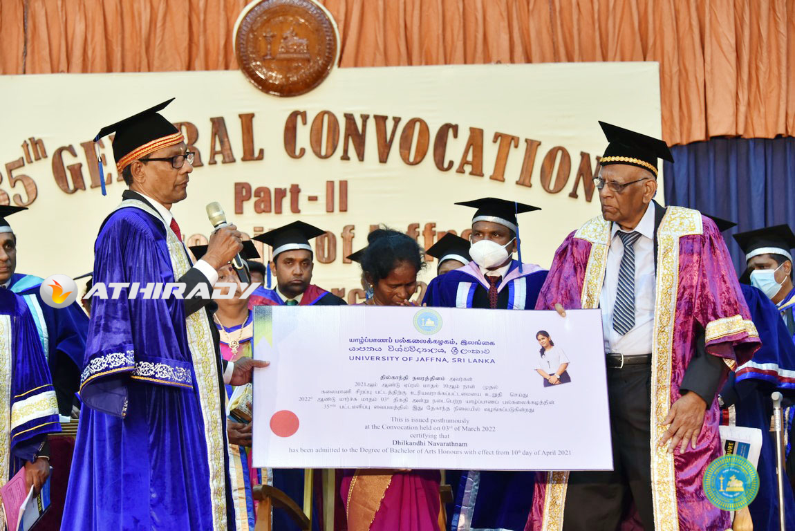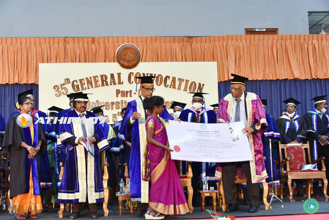 யாழ்ப்பாணப் பல்கலைக்கழகத்தின் 35 ஆவது பொதுப் பட்டமளிப்பு விழாவில் மாணவி ஒருவருக்கு ஏகாந்த நிலையில் பட்டமும், நினைவுத் தங்கப் பதக்கமும் வழங்கப்பட்டுள்ளது.