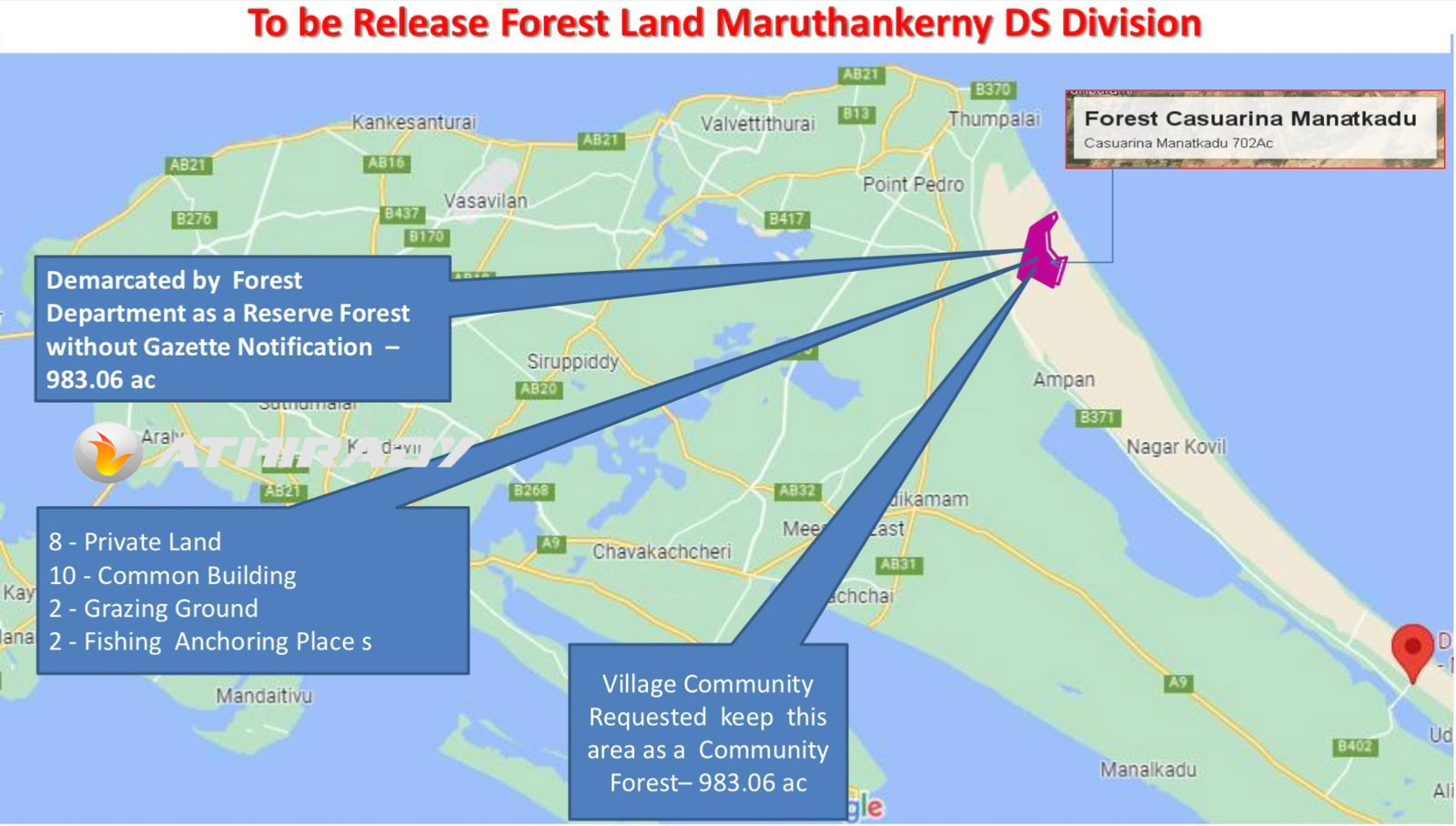 மக்களினால் அமைக்கப்பட்ட மணற்காடு சவுக்கு மரக் காட்டினை மக்கள் மயப்படுத்த வேண்டும் என்கிற மக்களின் கோரிக்கையை யாழ். மாவட்ட பாராளுமன்ற உறுப்பினரும், பாராளுமன்ற குழுக்களின் பிரதித் தவிசாளரும், யாழ். மாவட்ட ஒருங்கிணைப்புக் குழுவின் தலைவருமான அங்கஜன் இராமநாதன் அவர்கள், அமைச்சரின் கவனத்துக்கு கொண்டு சென்றதையடுத்து இத்தீர்மானம் எடுக்கப்பட்டுள்ளது.
