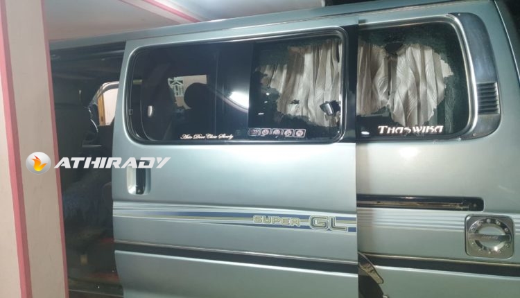 யாழ்.நவாலி பகுதியில் ஹயஸ் வாகனம் இனந்தெரியாத நபர்களினால் அடித்து நொறுக்கப்பட்டது.!! (படங்கள்)