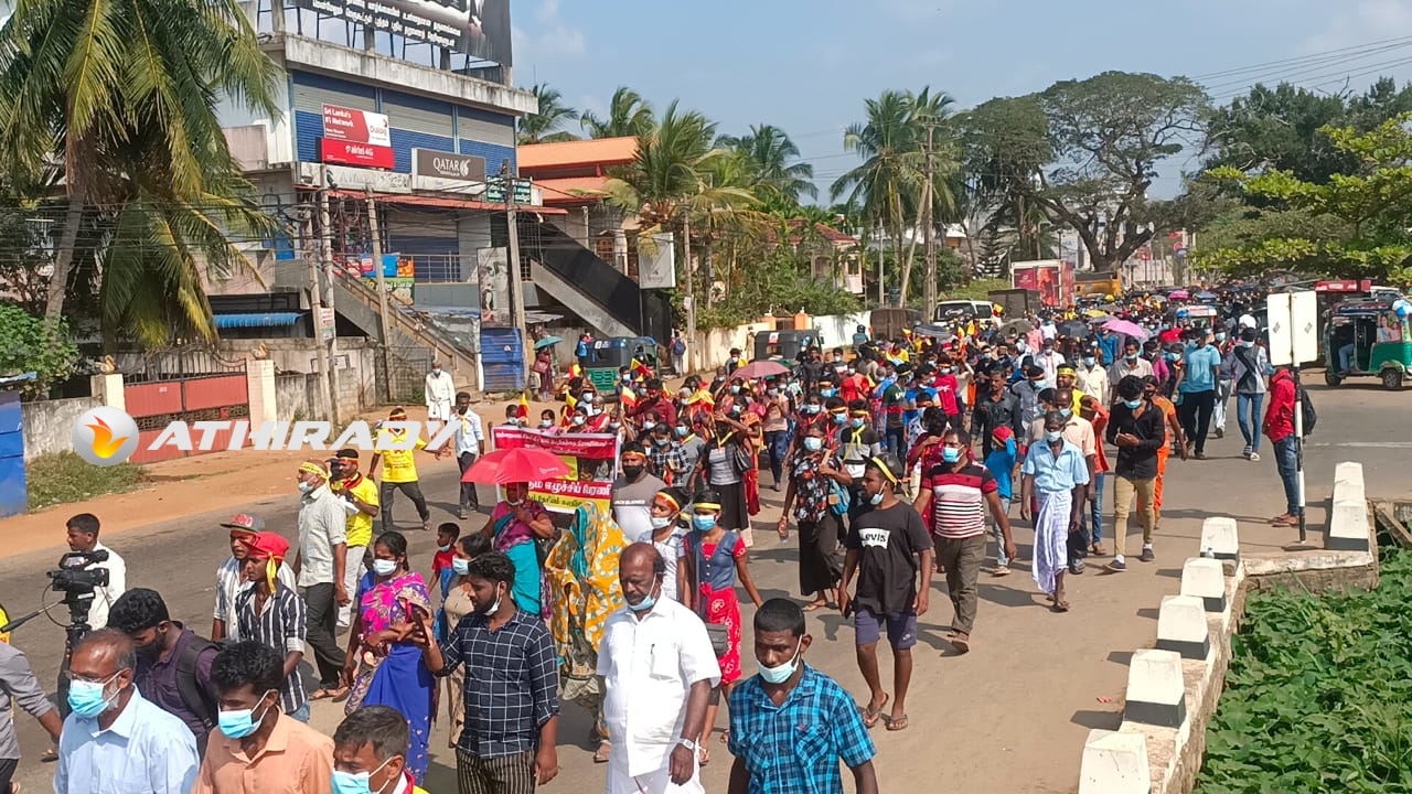 வவுனியா மாவட்ட செயலகத்திற்கு அருகாமையிலுள்ள பண்டாரவன்னியன் நினைவுச் சிலைக்கு முன்பாக இன்று (13.03) பிற்பகல் 2.30 மணிக்கு ஆரம்பித்த பேரணியானது, ஏ9 வீதியூடாக சென்று தாண்டிக்குளம் ஐயனார் விளையாட்டு கழக மைதானத்தினை அடைந்து பொதுக்கூட்டம் இடம்பெற்றது.