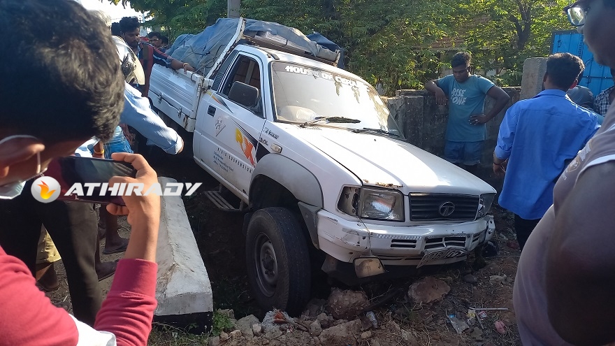 யாழ்ப்பாணத்தில் இருந்து பருத்தித்துறை நோக்கி பயணித்துக் கொண்டிருந்த குறித்த வாகனம் வேக கட்டுப்பாட்டை இழந்து வீதியின் அருகே இருந்த இரண்டு மோட்டார் சைக்கிள்கள் மீது மோதியதில் ஒரு மோட்டார் சைக்கிள் பட்டா வாகனத்துடன் சேர்ந்து பாலத்தினுள் சென்றது.