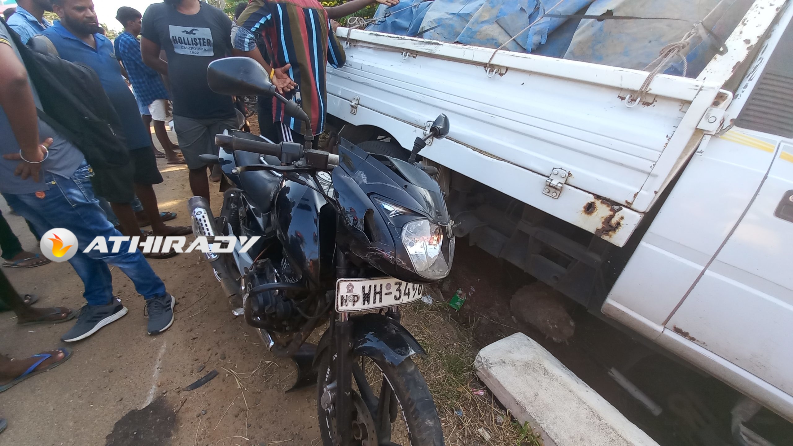 யாழ்ப்பாணம் – ஆவரங்கால் பகுதியில் இடம்பெற்ற விபத்தில் பட்டா ரக வாகனம் மோட்டார் சைக்கிள்களை எதிரே உள்ள பாலத்தினுள் மோதித் தள்ளியது.