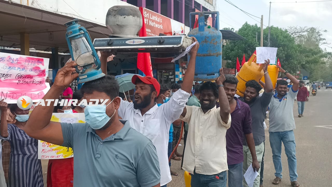 எரிவாறு சிலிண்டர் , மின்சாரம் , அடுப்பு , மண்ணெண்ணெய் ,போன்றவைக்கு தற்போதும் வரிசையில் ஆனால் அவைகள் இல்லை என்பதை சித்தரிக்கும் வகையில் குறித்த பொருட்கள் காட்சிப்படுத்தப்பட்டிருந்ததுடன் குறித்த போராட்டம் சுமார் ஒரு மணிநேரம் இடம்பெற்றிருந்தது