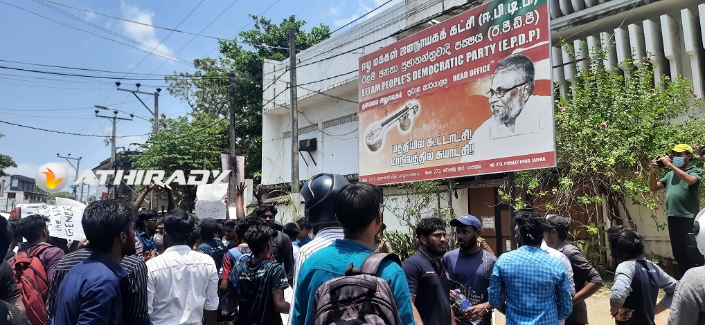 அதேவேளை மாணவர்கள் பேரணியாக ஸ்ரான்லி வீதியூடாக செல்லும் போது அமைச்சர் டக்ளஸ் தேவானந்தாவின் அலுவலகம் முன்பு சில நிமிடங்கள் தரித்து நின்று அரசுக்கு எதிரான கோஷங்களை எழுப்பி இருந்தமையும் குறிப்பிடத்தக்கது.