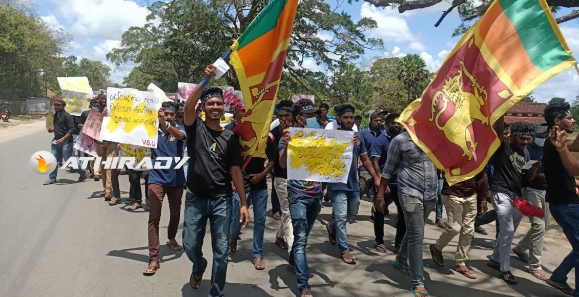 ஜனாதிபதி கோட்டபாய ராஜபக்ஸ அவர்களை நாட்டை விட்டு வெளியேறுமாறு கோரி வவுனியா பல்கலைக்கழக மாணவர்களால் ஆர்ப்பாட்டம் ஒன்று முன்னெடுக்கப்பட்டது. இன்று (05.04) காலை வவுனியா, மன்னார் வீதியில் அமைந்துள்ள காமினி மகாவித்தியாலயத்திற்கு முன்பாக ஆரம்பித்த ஆர்ப்பாட்ட பேரணியானது கண்டி வீதியை அடைந்து, ஹொரவப்பொத்தானை வீதியூடாக பசார் வீதி சென்று பழைய பேரூந்து நிலையத்தை அடைந்தது. இதன்போது மணிக்கூட்டு கோபுர சந்தி மற்றும் பழைய பேருந்து நிலையம் என்பவற்றுக்கு முன்னால் வீதியை மறித்தும் மாணவர்கள் ஆர்ப்பாட்டத்தில் ஈடுபட்டனர். ‘கோட்டா … Continue reading கோட்டாவை நாட்டை விட்டு வெளியேறுமாறு வவுனியாவில் பல்கலைக்கழக மாணவர்கள் போராட்டம்!! (படங்கள்)