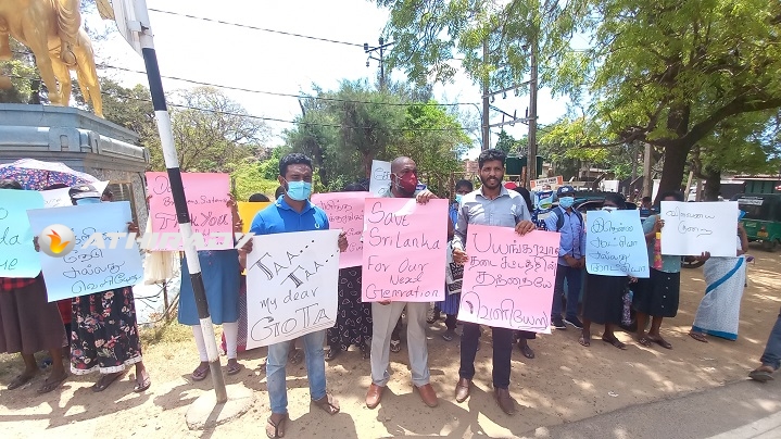 குறித்த போராட்டம் ஐக்கிய மக்கள் சக்தியின் நல்லூர் தொகுதி அமைப்பாளர் அ.கிருபாகரன் தலைமையில் இடம்பெற்றது