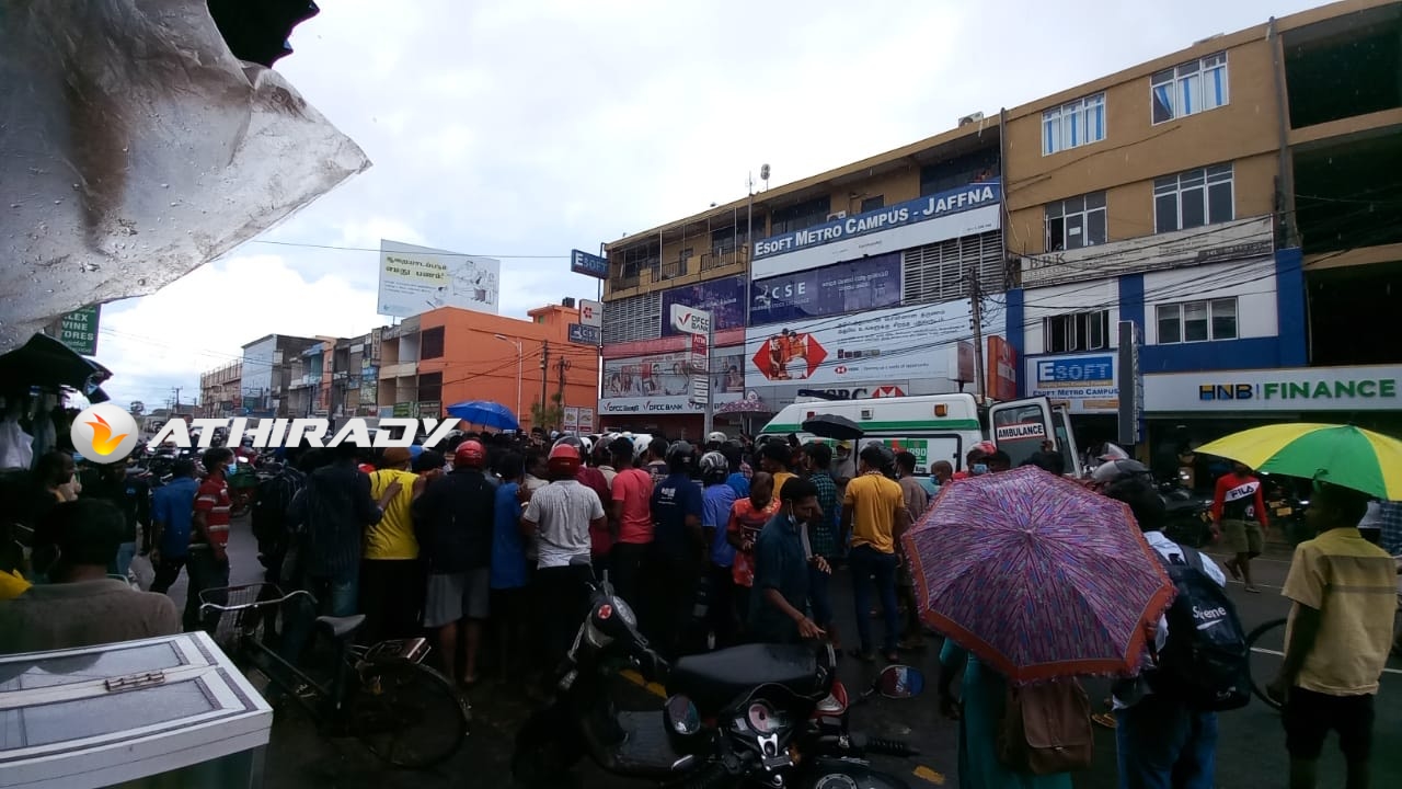 யாழ்ப்பாணம் சத்திர சந்தி பகுதியில் இன்றைய தினம் திங்கட்கிழமை காலை இவ் விபத்து இடம்பெற்றுள்ளது.