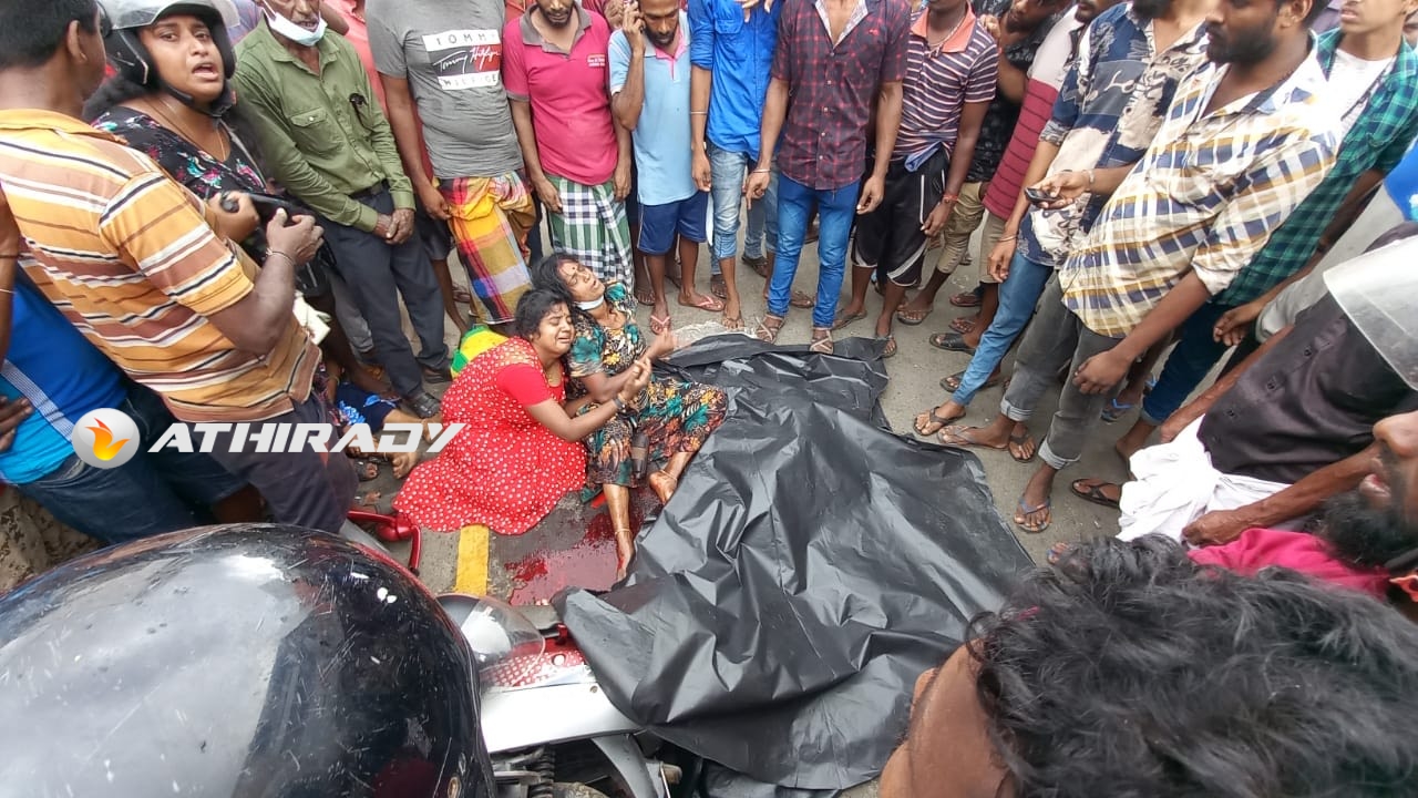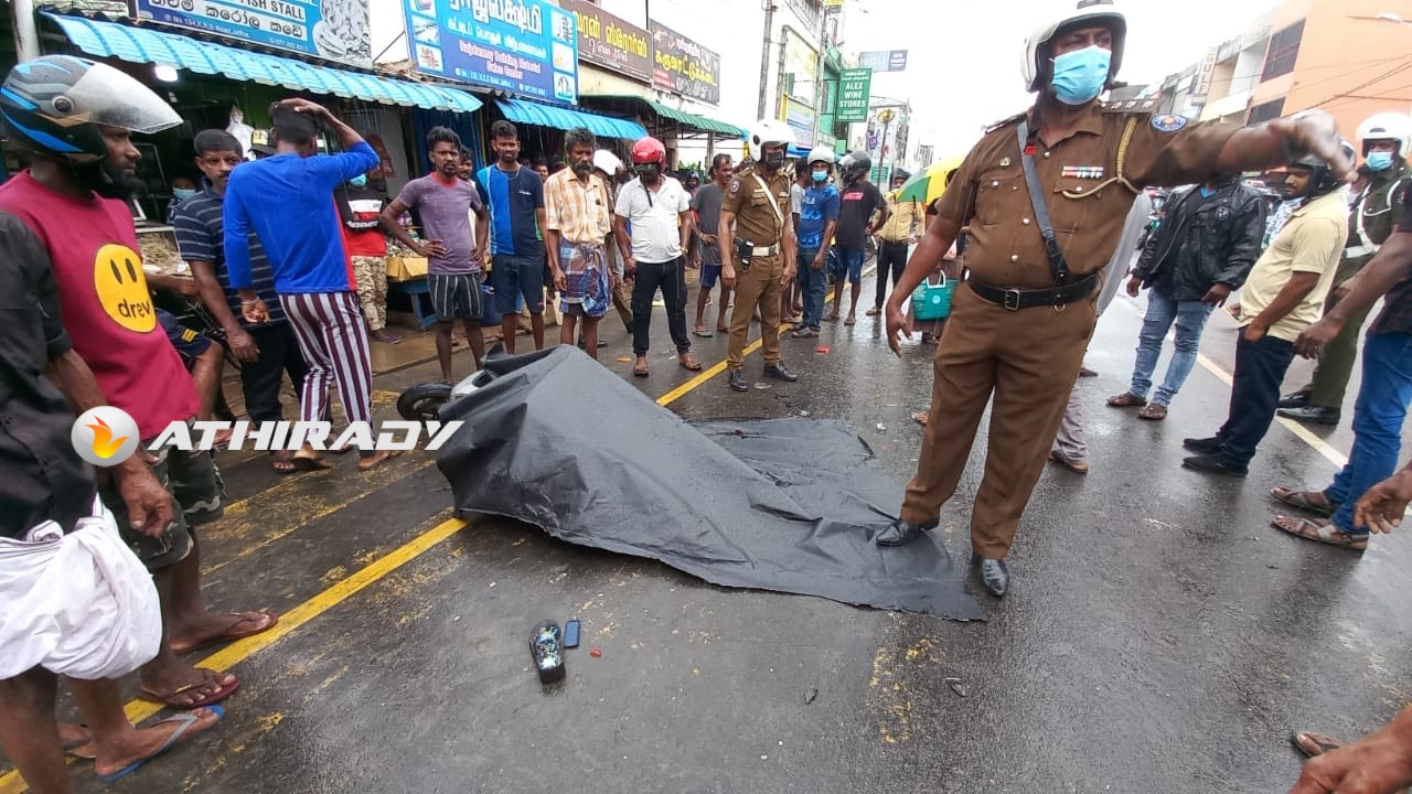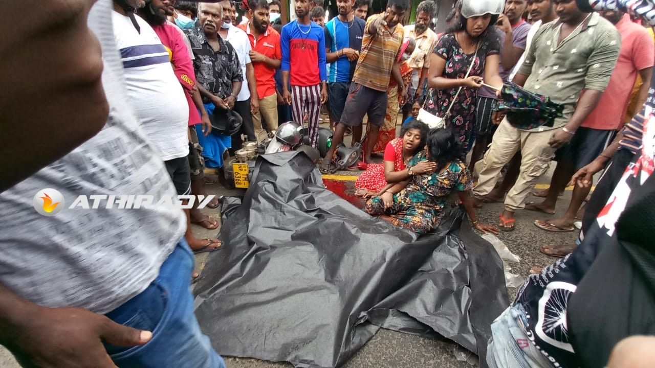 முன்னால் தாயும் மகனும் மோட்டார் சைக்கிளில் சென்று கொண்டிருந்த வேளை பின்னால் சென்ற பாரவூர்தி மோதியதில், மோட்டார் சைக்கிளில் பின்னுக்கு இருந்து பயணித்த சிறுவன் , வீதியில் விழுந்து பாரவூர்தியின் சக்கரத்திற்குள் சிக்கி ஸ்தலத்திலையே உயிரிழந்துள்ளான்.