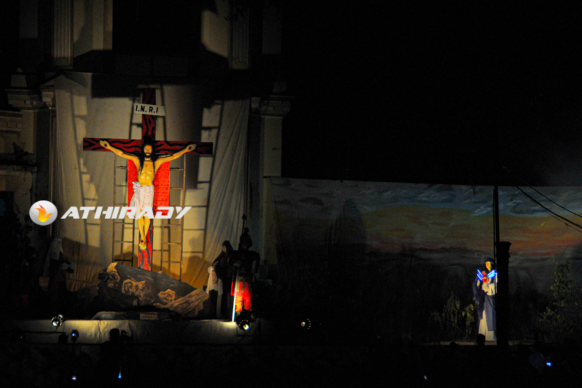 இவ்வாராதனையில் ஆண்டவரை சிலுவையில் அறைந்து இறைமகன் இயேசு சிலுவையில் மரிக்கும் காட்சியைத் தொடர்ந்து அவரின் உடலை சிலுவையில் இருந்து இறக்கி மக்கள் அஞ்சலிக்காக ஆலயத்துக்குள் எடுத்துச்செல்லும் காட்சியும் இடம்பெற்றது.