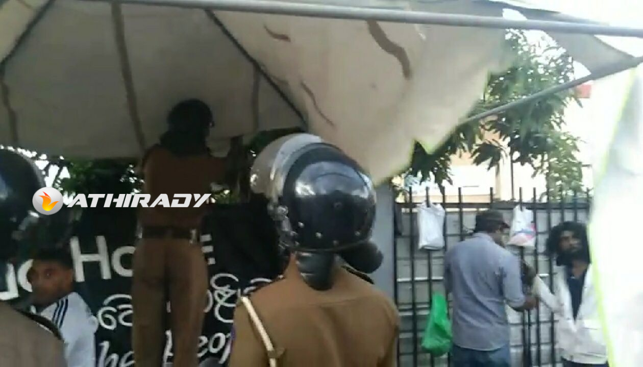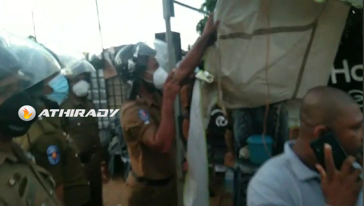 இந்நிலையில், போராட்டத்தில் ஈடுபட்டவர்களால் அமைக்கப்பட்ட கூடாரங்கள் பொலிஸாரால் அகற்றப்பட்டதால் பரபரப்பு ஏற்பட்டது.