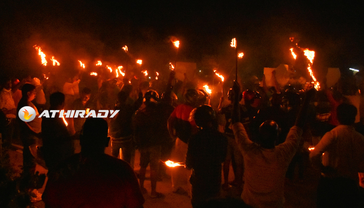 யாழ் பண்ணைக் கடற்கரையில் இரவு 7 மணியளவில் அமைதியாக ஆரம்பித்த தீப்பந்த போராட்டம் பண்ணைப் பாலத்தில் இருந்து பண்ணை சுற்றுவட்டம் வரை பேரணியாக சென்றது.