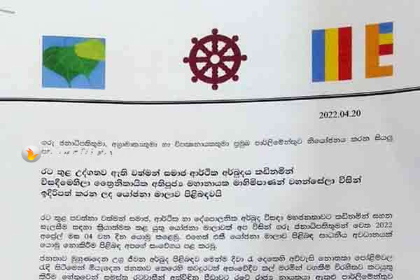 நாட்டில் நிலவும் பொருளாதார நெருக்கடிக்கு தீர்வு காண நடவடிக்கை எடுக்கப்படாவிட்டால் மகா சங்கத்தினர் ஒன்றிணைந்து சங்க மாநாட்டை பிரகடனப்படுத்துவோம் என, மூன்று பௌத்த உயர் பீடங்களின் மகாநாயக்கர்கள் அரசாங்கத்துக்கு விசேட கடிதம் ஒன்று அனுப்பியுள்ளனர்.