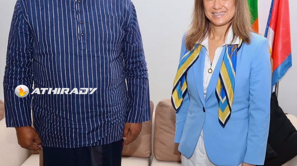 இலங்கைக்கான அமெரிக்க தூதுவர் ஐீலி சுங் இன்றைய தினம் வடமாகாண ஆளூநர் ஜீவன் தியாகராஜாவை சந்தித்து கலந்துரையாடினார். யாழ்ப்பாண மாவட்டத்திற்கான விஜயத்தினை மேற்கொண்டுள்ள இலங்கைக்கான அமொரிக்க தூதுவர் ஐீலி சுங் பல்வேறு தரப்புக்களுடன் கலந்துரையாடல்களை மேற்கொண்டு வருகிறார். அந்த வகையில் இன்று காலை வடமாகாண ஆளூநரை சந்தித்து கலந்துரையாடினார். குறித்த சந்திப்பில் யாழ்ப்பாணத்திலுள்ள தற்போதைய நிலைமைகள் மற்றும் சமகாலப் போக்குகள் குறித்தும் கலந்துரையாடப்பட்டதாக தெரிவிக்கப்படுகிறது. “அதிரடி” இணையத்துக்காக யாழில் இருந்து “கலைநிலா” யாழ்.வந்த அமெரிக்க தூதுவர் பல்வேறு … Continue reading அமெரிக்க தூதுவர் வடமாகாண ஆளூநர் ஜீவன் தியாகராஜாவை சந்தித்து கலந்துரையாடினார்.!!