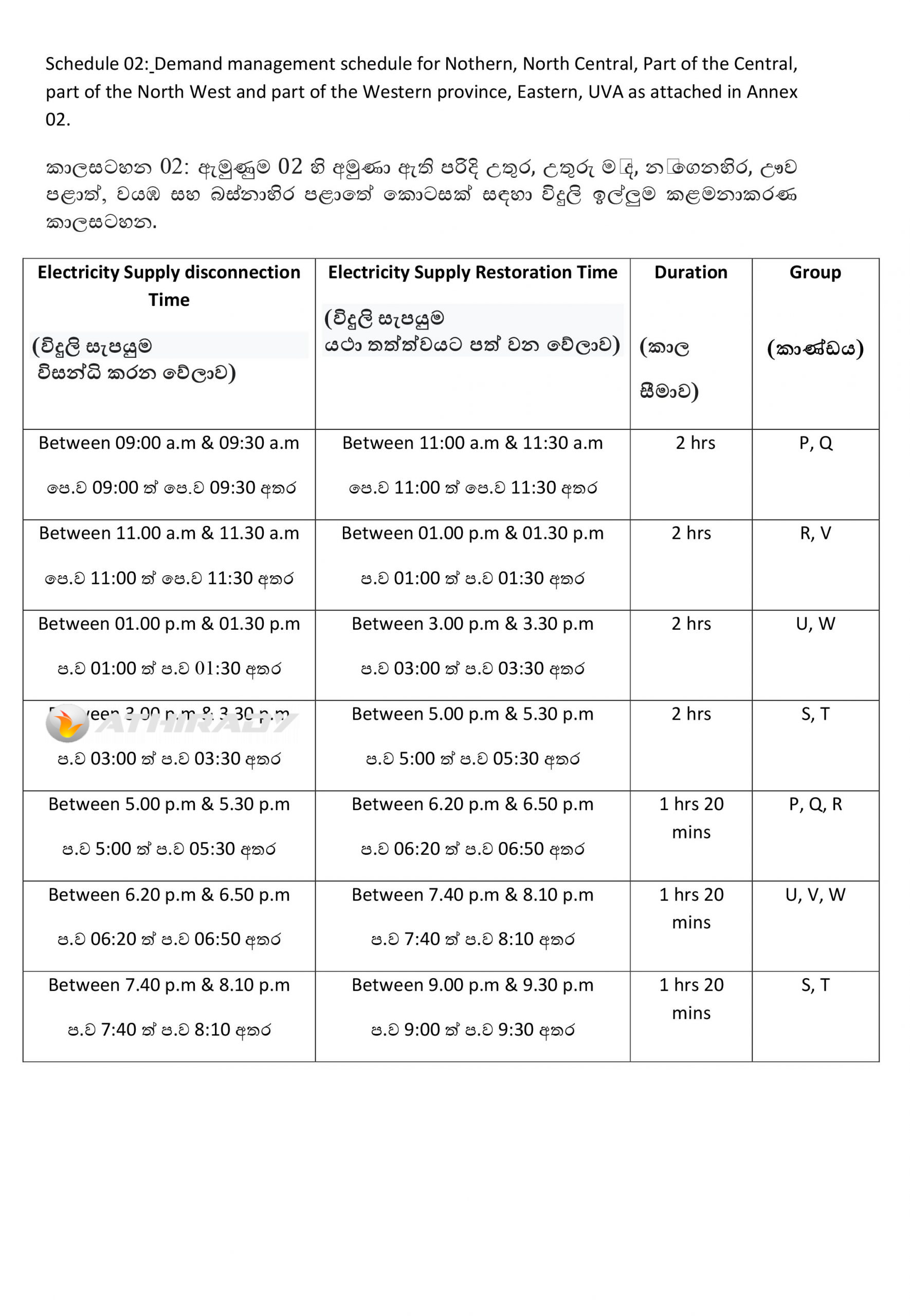 30 ஆம் திகதி வரை மின்வெட்டு அமுலாகும் நேர அட்டவணை!! (படங்கள்)