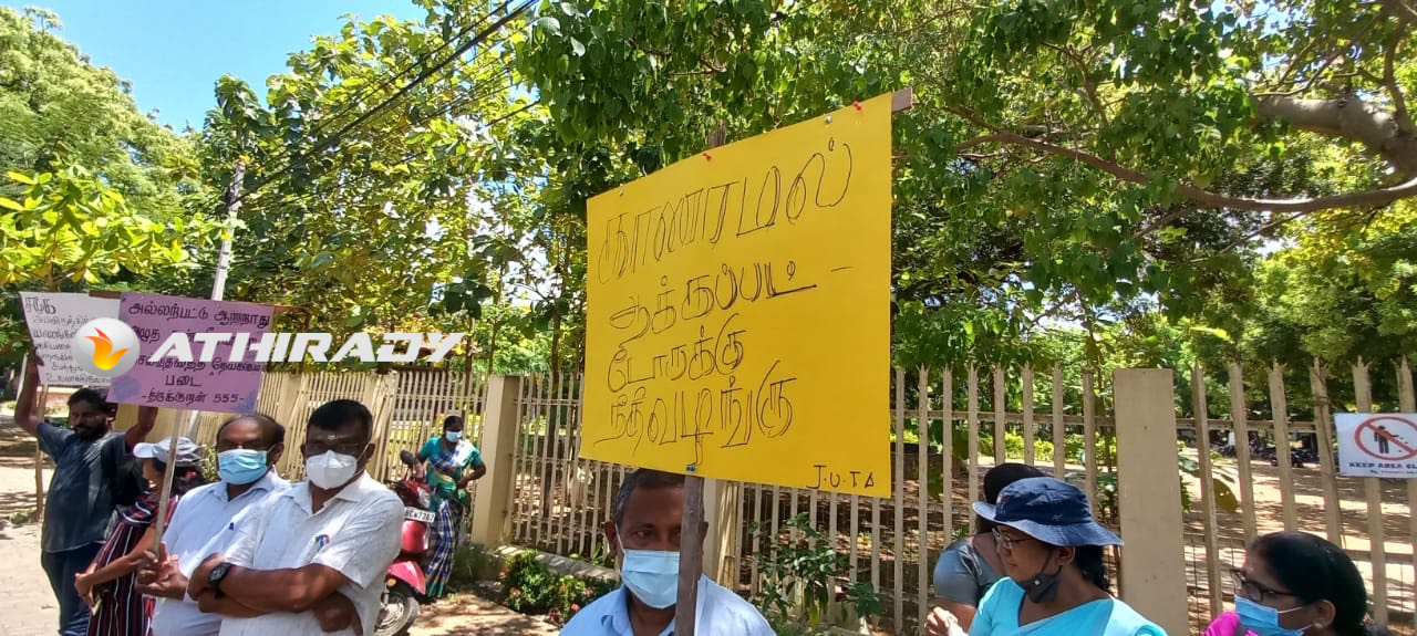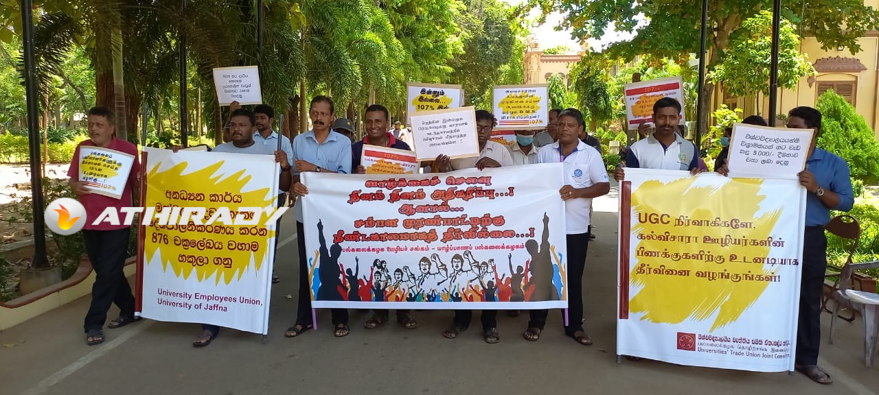 யாழ். பல்கலை ஆசிரியர் சங்கம் மற்றும் ஊழியர் சங்கமும் போராட்டத்தில் குதிப்பு!! (படங்கள்)