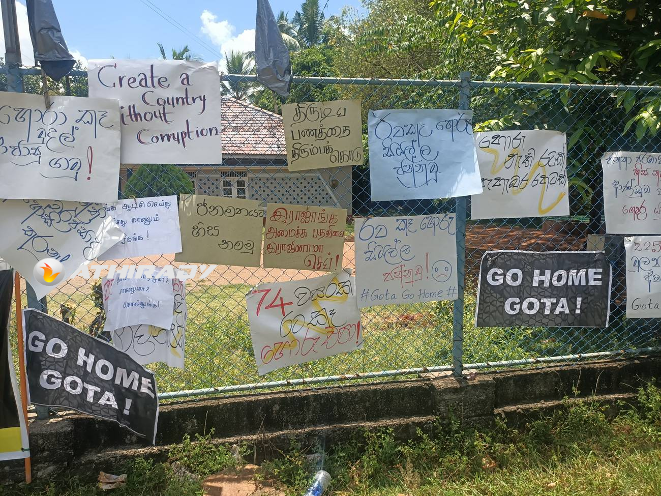 ‘ஜனாதிபதி கோட்டபாய அவர்களை வீட்டுக்கு செல்லுமாறும் , பிரதமர் மஹிந்த அவர்களை பதவி விலகுமாறும் கோரிய ஆர்ப்பாட்டக்காரர்கள் மஸ்தான் எம்.பியை இராஜாங்க அமைச்சில் இருந்து உடனடியான இராஜினாமா செய், அரசாஙாக்த்தை ஆதரித்து விட்டு ஊருக்கு வராதே, மக்களின் கருத்துக் மதிபளி என கோசங்களை எழுப்பியதுடன் அவரது அலுவலக வேலிப் பகுதிகளில் அரசாங்கத்திற்கு எதிரான சுலோக அட்டைகளையும் காட்சிப்படுத்தியதுடன் அலுவலக வாயில் மற்றும் அவரது பாரிய பதாதை என்பவற்றிலும் கோட்டாவை வீட்டுக்கு செல்லுமாறும் அரசுக்கு ஆதரவளித்து விட்டு ஊருக்கு வராதே எனவும் வர்ணப் பூச்சினால் பொறித்திருந்தனர்.
