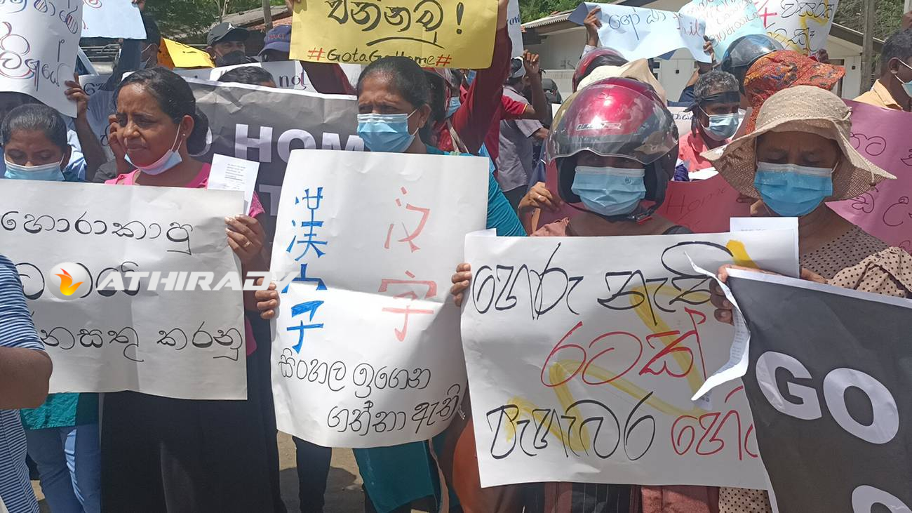 தமிழ் , சிங்களம் மற்றும் ஆங்கில மொழி பதாதைகளை தாங்கியவாறு போராட்டம் மேற்கொண்ட மக்கள் சீனா மொழியையும் தாங்கி பதாதைகளுடன் போராட்டத்தை மேற்கொண்டிருந்ததனை அவதானிக்க முடிந்துள்ளது.
