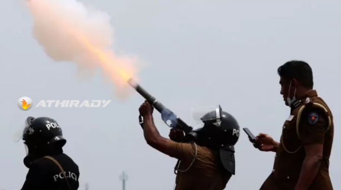 போராட்டக் காரர்கள், அவர்களைத் தாக்கும் ராஜபக்ஷ ஆதரவாளர்கள் என இரு தரப்பினர் மீதும் போலீசார் கண்ணீர் புகை குண்டு வீசுகின்றனர்.