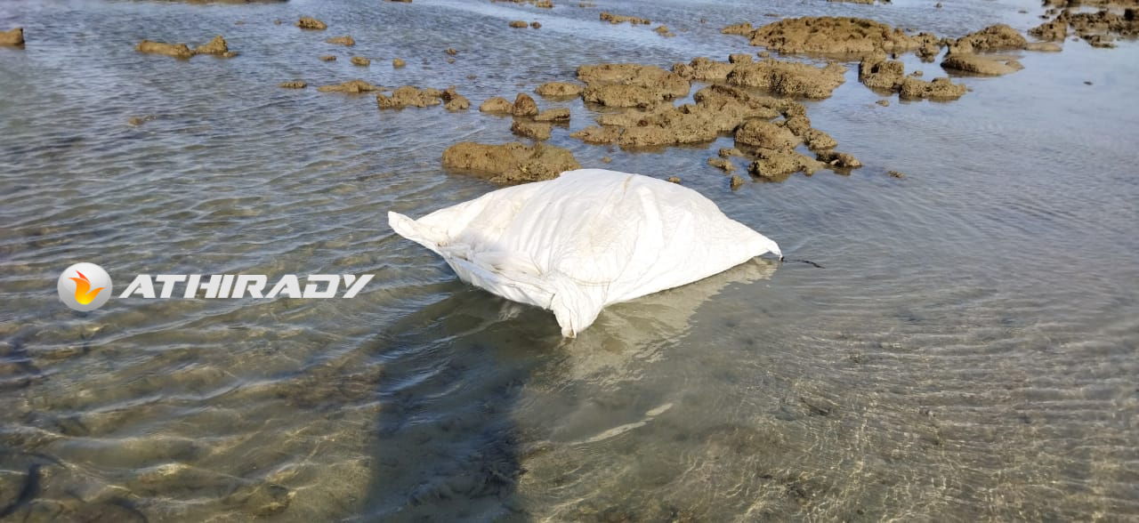 இந்தியாவில் இருந்து இவற்றை கடத்தி வந்த நிலையில் கடற்படையினரை கண்டு கடத்தல்காரர்கள் பொதியினை கடலில் வீசி விட்டு தப்பி சென்று இருக்கலாம் என கடற்படையினர் சந்தேகம் தெரிவித்துள்ளனர்.