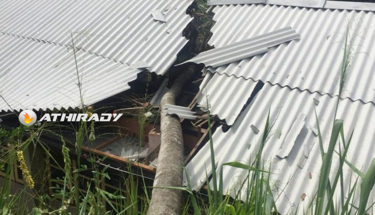 குறித்த பாடசாலைக்கு பக்கத்து காணியில் இருந்த மிகப்பழமையான தென்னை மரம் ஒன்று முறிந்து, வகுப்பறையின் மீது விழுந்ததில் இவ்விபத்து இடம்பெற்றுள்ளது.