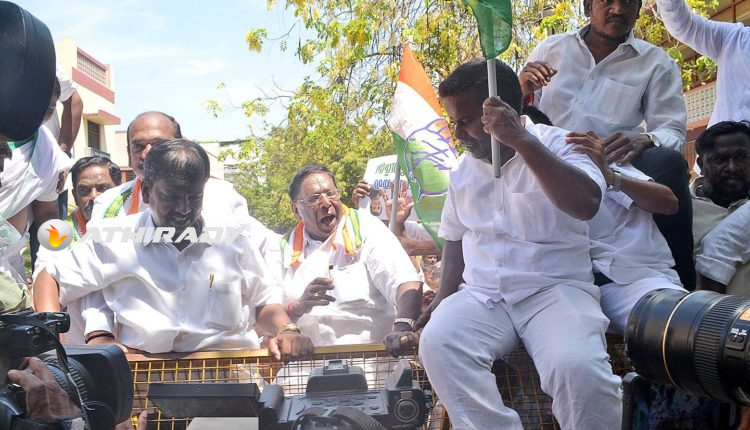 கவர்னர் மாளிகை நோக்கி பேரணி: நாராயணசாமி-வைத்திலிங்கம் எம்.பி. உள்பட நூற்றுக்கணக்கானோர் கைது..!!