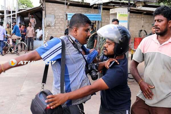 குறித்த செய்தியினை சக ஊடகவியலாளருடன் அறிக்கையிட சென்ற சுயாதீன ஊடகவியலாளர் சண்முகம் தவசீலன் எரிபொருள் நிரப்பு நிலையத்தில் செய்தி சேகரிக்கும் நடவடிக்கையில் ஈடுபட்டிருந்த சமயம் அங்கு மதுபோதையில் வருகை தந்த நபரொருவரால் தாக்குதலுக்கு உள்ளாகினார்.