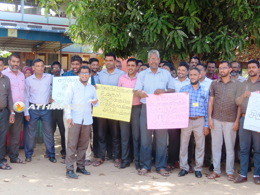 நாட்டில் தற்போது ஏற்பட்டுள்ள பொருளாதார நெருக்கடி கல்வி சேவையில் காணப்படும் குறைபாடுகள் உடனடியாக நீக்கப்பட வேண்டியும் சம்பந்தப்பட்டவர்கள் உடனடி நடவடிக்கை எடுக்குமாறும் கோரி கல்வி பொது சாதாரண பரீட்சை விடைத்தாள் மதீப்பீடு கடமைக்காக வந்திருந்த ஆசிரியர்கர் இவ்வாறு ஆர்ப்பாட்டத்தில் ஈடுபட்டனர்.