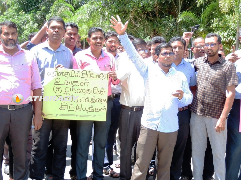எரிபொருள் பிரச்சினைக்கு தீர்வு வழங்குமாறு கோரி ஆசிரியர்கள் போராட்ட ஊர்வலம்!! (படங்கள்)