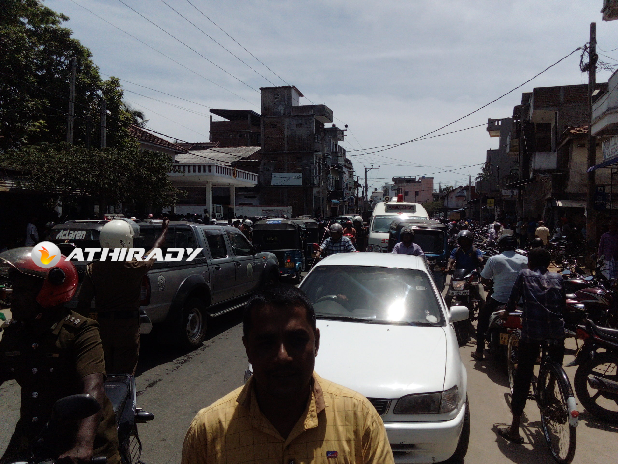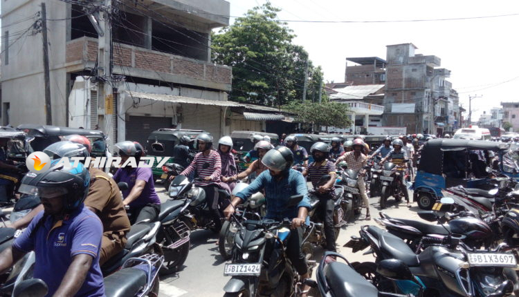 இதனால் அவசர சிகிச்சைக்காக செல்லும் அம்புலன்ஸ் வண்டிகள் உட்பட அவசர முன்களப்பணி செய்யும் அரச திணைக்கள வாகனங்கள், பொதுமக்கள் எனப்பலரும் போக்குவரத்து நெரிசலில் சிக்கியிருந்ததுடன் வாகன நெரிசலை கட்டுப்படுத்தி போக்குவரத்தை சீரமைக்கும் பணியை பொலிஸார் மேற்கொண்டிருந்தனர்.