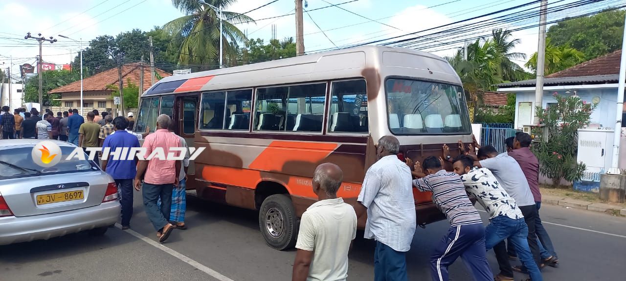 பேருந்துகளை தள்ளிக்கொண்டு வந்து பருத்தித்துறையில் போராட்டம்!! (படங்கள்)