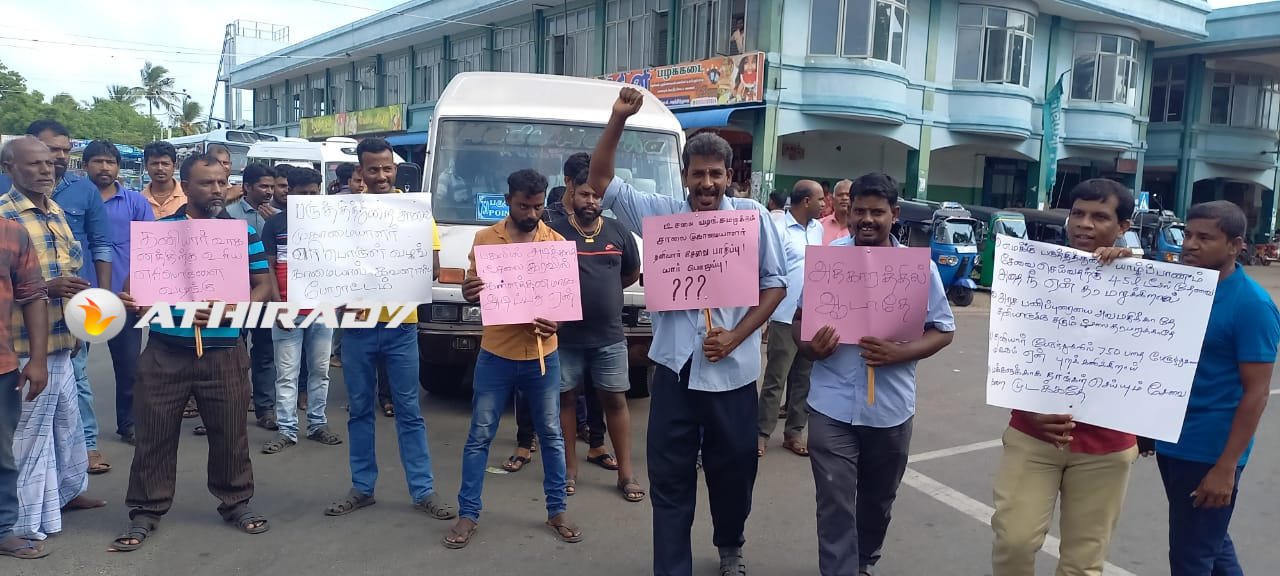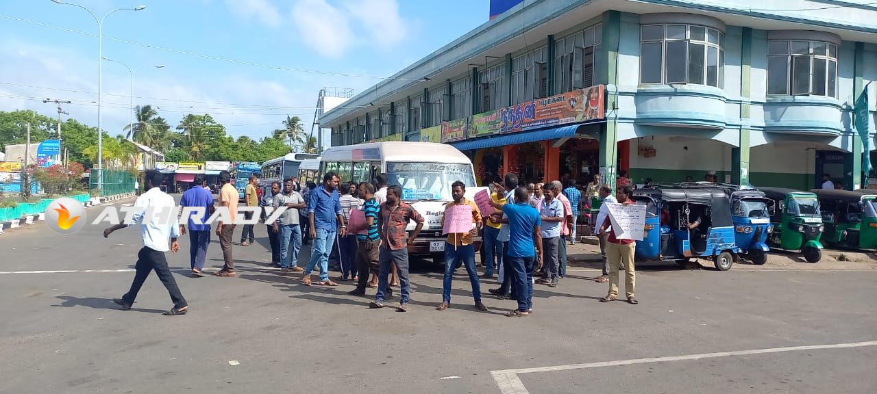 பருத்தித்துறை பேருந்து நிலையத்தில் இருந்து இன்றைய தினம் வெள்ளிக்கிழமை காலை தமது பேருந்துகளை , பருத்தித்துறை பிரதேச செயலகத்திற்கு தள்ளிக்கொண்டு வந்து போராட்டத்தில் ஈடுபட்டனர்.