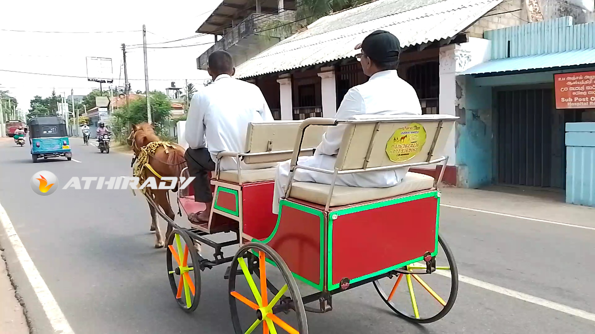 யாழில் எரிபொருள் தட்டுப்பாட்டினால் குதிரை வண்டியில் தனது பயணத்தை அருட்தந்தையர் ஒருவர் மேற்கொண்டு வருகின்றார்.