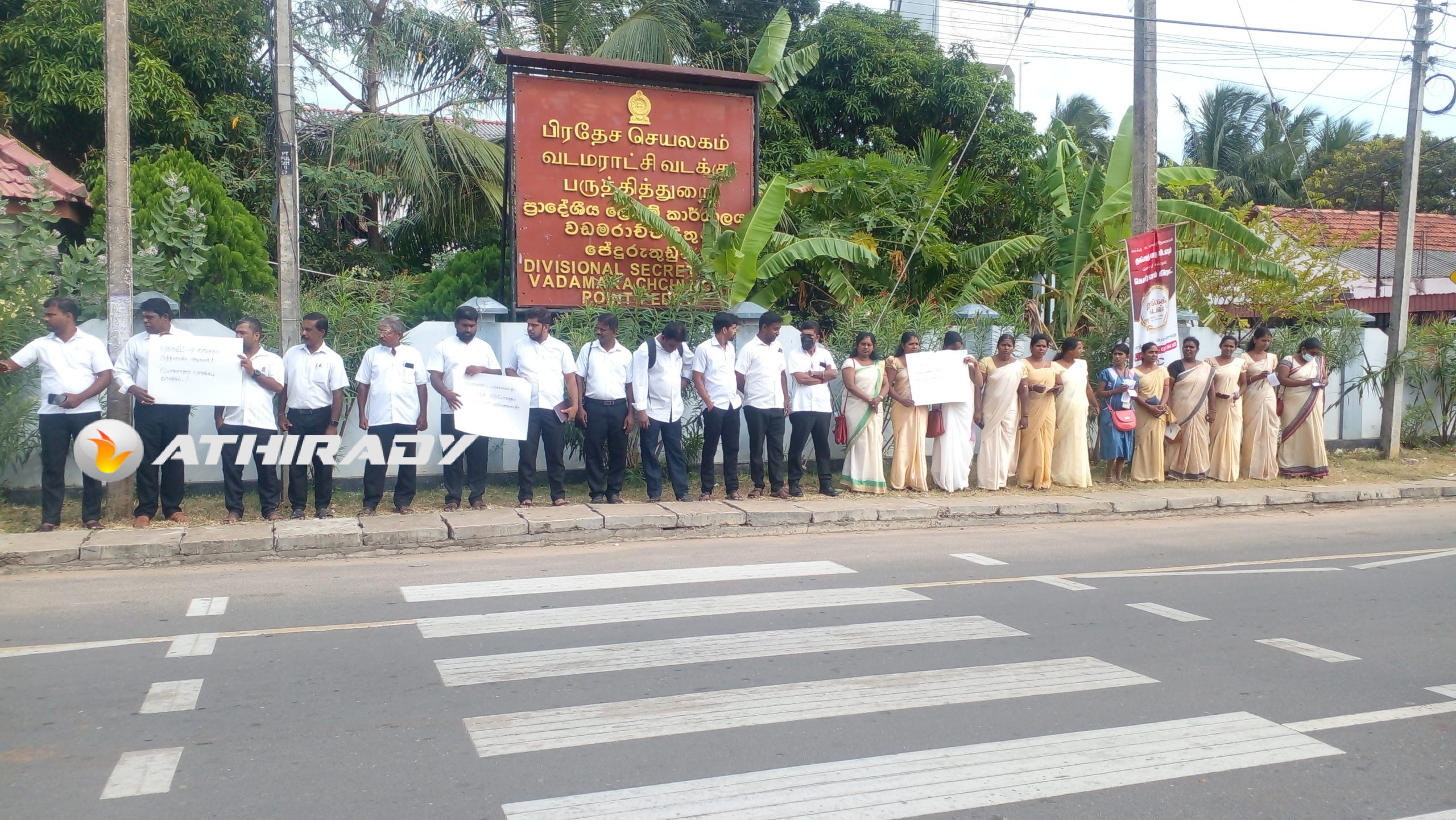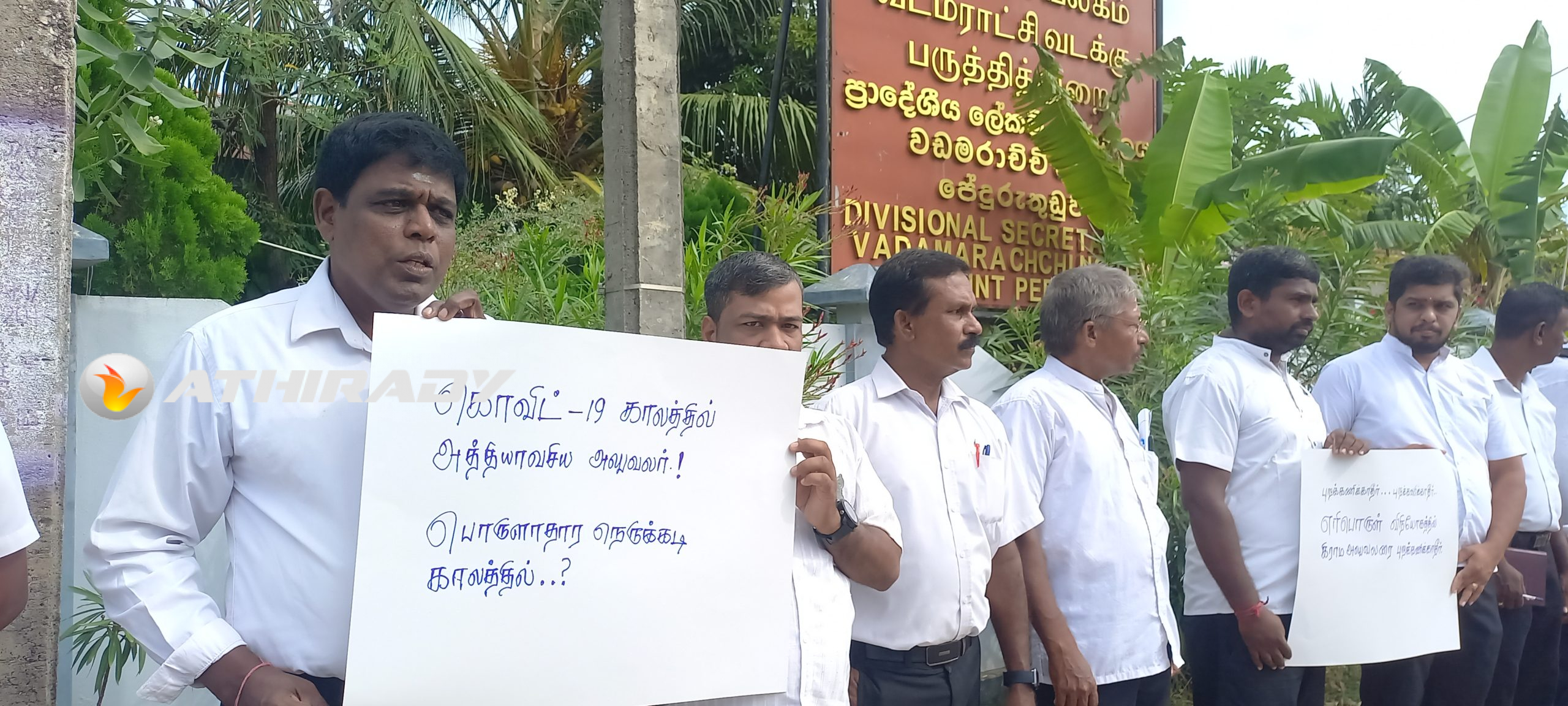 குறித்த கவனயீர்ர்ப்பு போராட்டத்தில், கிராம சேவகர்கள் அத்தியாவசிய அலுவலர்களா? அல்லது அநாவசிய அலுவலர்களா? எரிபொருள் விநியோகத்தில் கிராம அலுவலர்களை புறக்கணிக்காதீர்கள், கொவிட் காலத்தில் அத்தியாவசிய அலுவலர்கள் பொருளாதார நெருக்கடி காலத்தில் ???