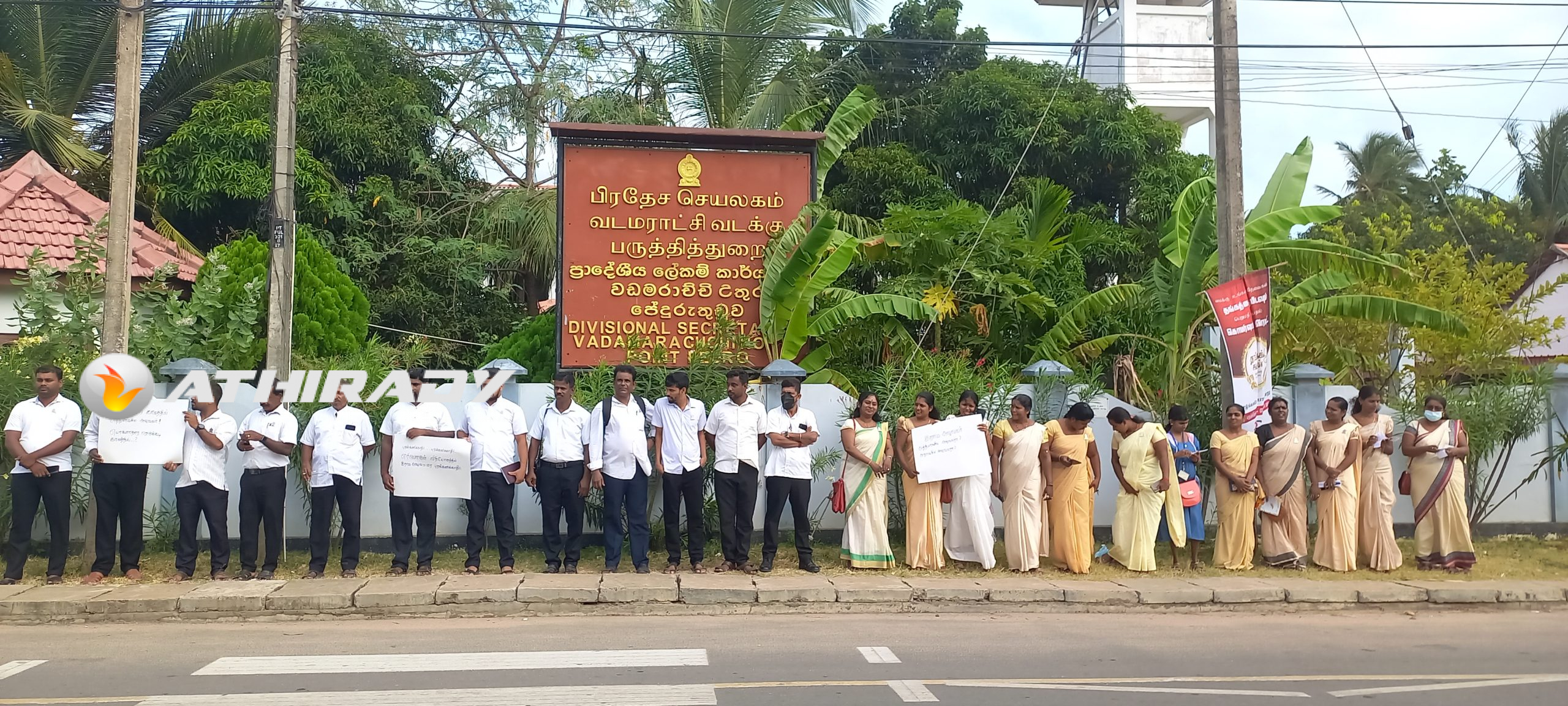 யாழ்ப்பாணம் வடமராட்சி வடக்கு, பருத்தித்துறை பிரதேச செயலர் பிரிவுக்கு உட்பட்ட கிராம சேவையாளர்கள் தமக்கு எரிபொருள் வழங்குகுமாறு கோரி இன்றைய தினம் செவ்வாய்க்கிழமை காலை கவனயீர்ப்பு போராட்டத்தில் ஈடுபட்டுடனர்