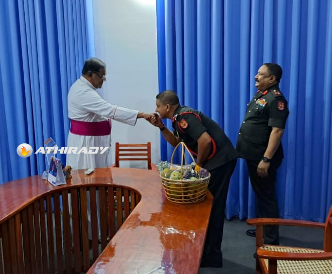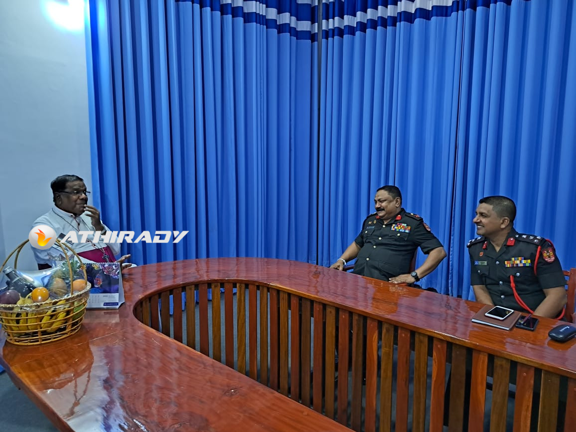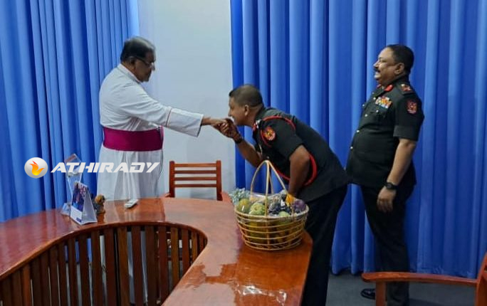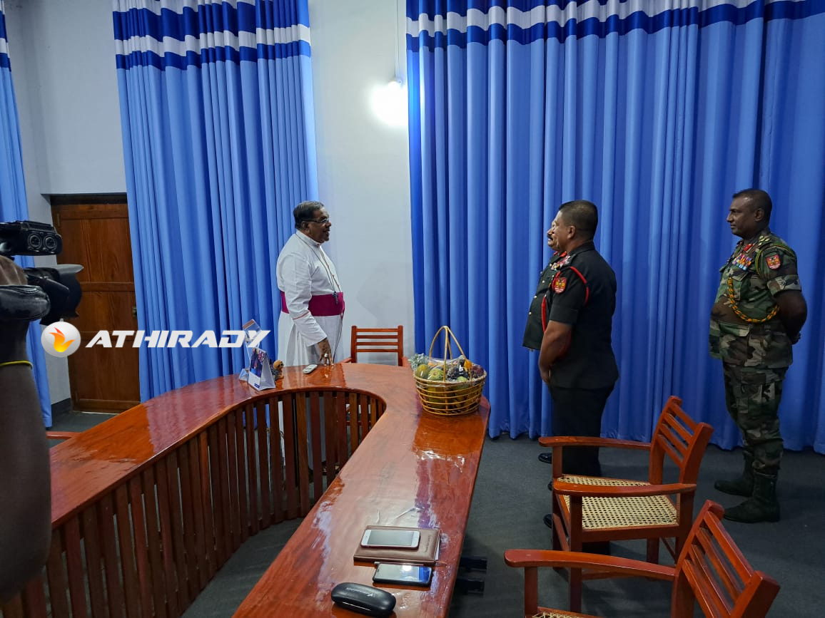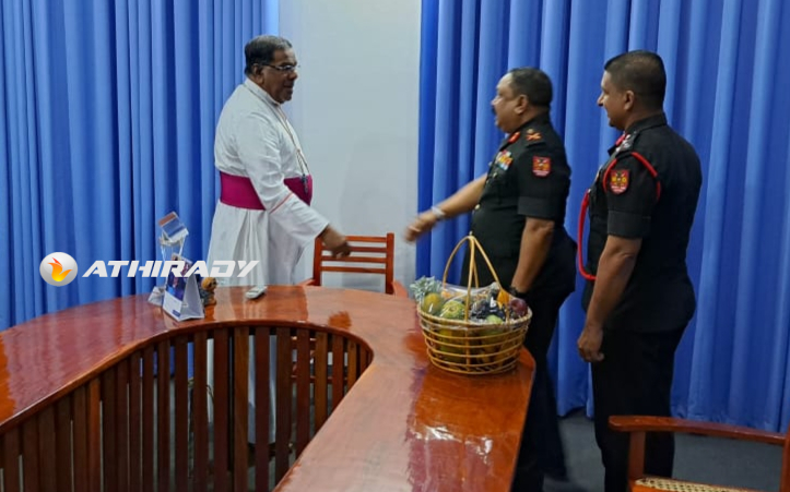 யாழ் கட்டளை தளபதி மேஜர் ஜெனரல் சந்தன விஜய சுந்தர ஜால்மர் யாழ் மறை மாவட்ட ஆயர் ஜஸ்டின் ஞானப்பிரகாசத்தினை இன்று திங்கட்கிழமை யாழ் ஆயர் இல்லத்தில் உத்தியோகபூர்வமாக சந்தித்து கலந்துரையாடினார்.